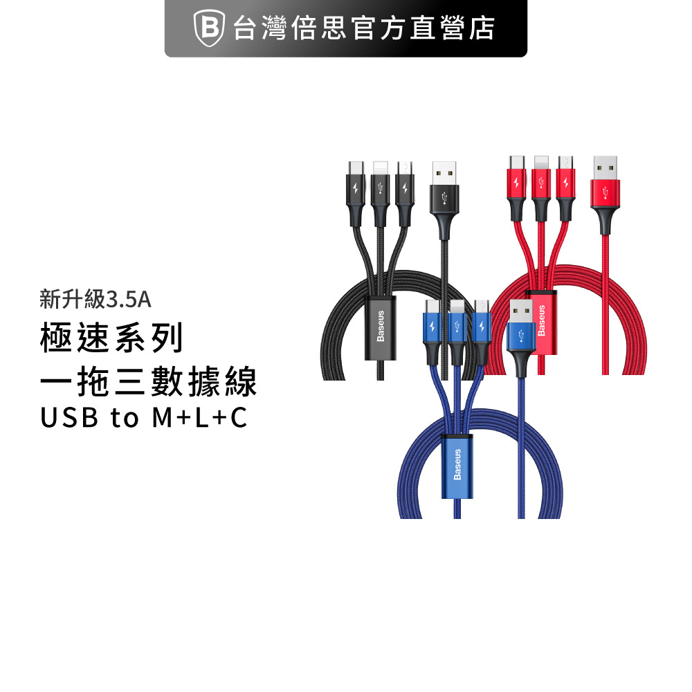 【Baseus倍思】3.5A極速一拖三充電線 Micro+Lightning+Type-C 三合一快充線 數據線安卓+Type c+IOS 赤岩紅|安卓+IOS+Type c 星海藍|安卓+IOS+Type c 星曜黑Cables, Chargers & ConvertersNawies 手機配件 | 代理 倍思 / Lisen / amuok