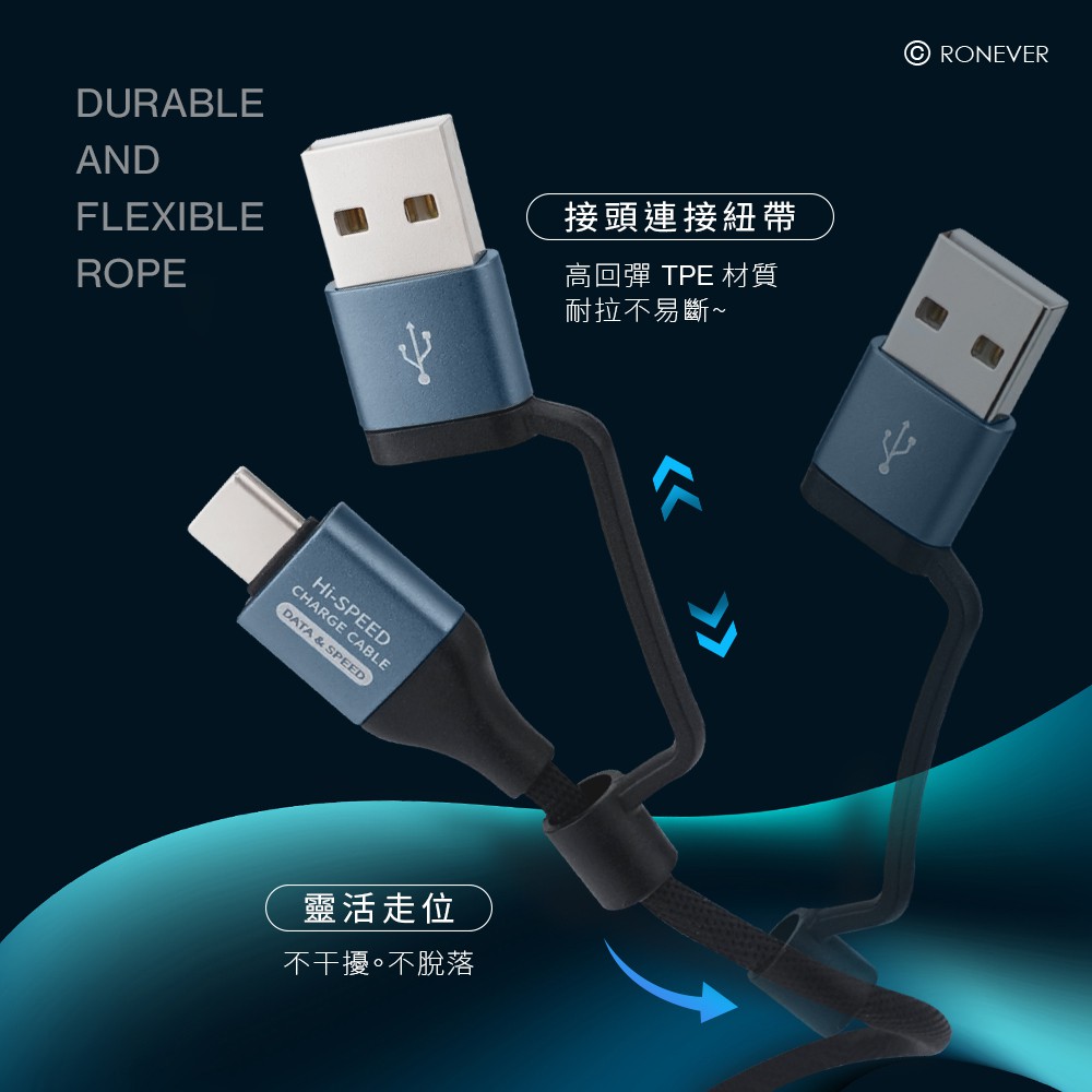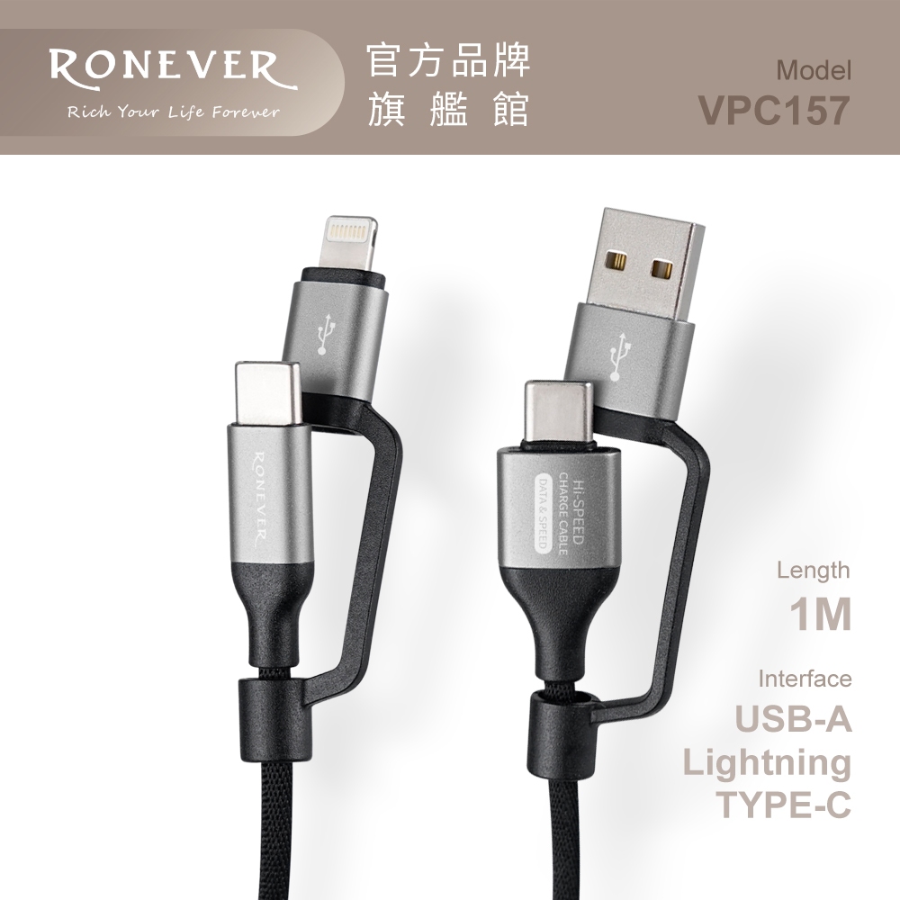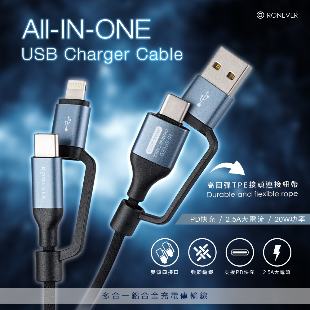 RONEVER VPC157 / 多合一鋁合金編織充電線太空灰|藍Cables, Chargers & ConvertersRONEVER 官方品牌館
