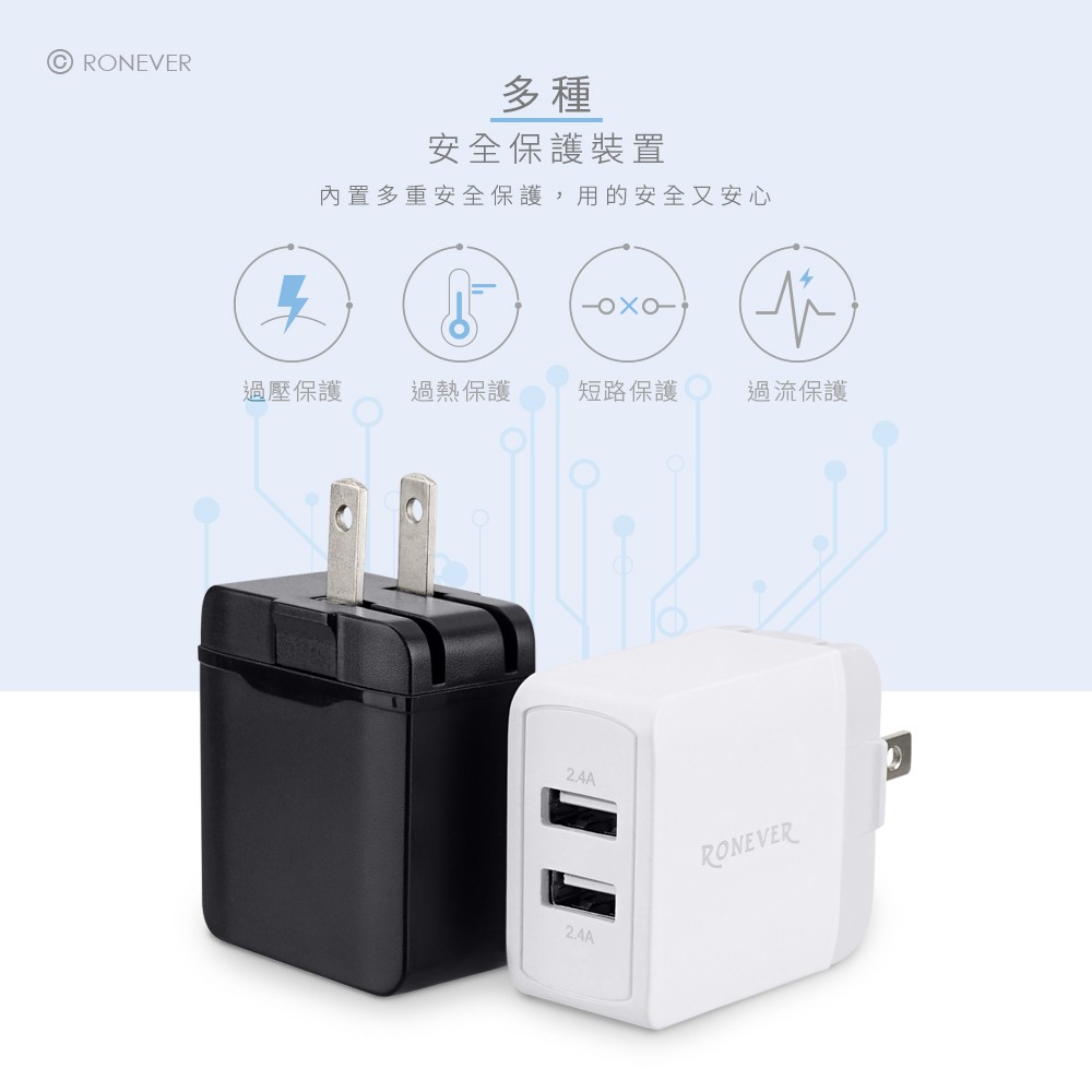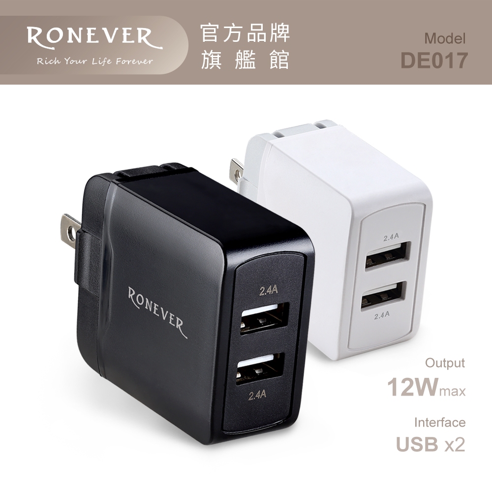 RONEVER DE017 / 2.4A USB雙孔電源供應器黑色|白色Cables, Chargers & ConvertersRONEVER 官方品牌館