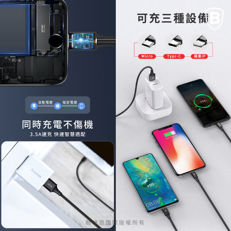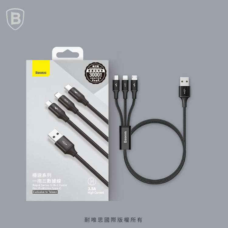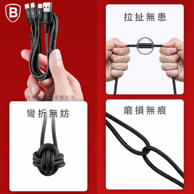 【Baseus倍思】3.5A極速一拖三充電線 Micro+Lightning+Type-C 三合一快充線 數據線安卓+Type c+IOS 赤岩紅|安卓+IOS+Type c 星海藍|安卓+IOS+Type c 星曜黑Cables, Chargers & ConvertersNawies 手機配件 | 代理 倍思 / Lisen / amuok