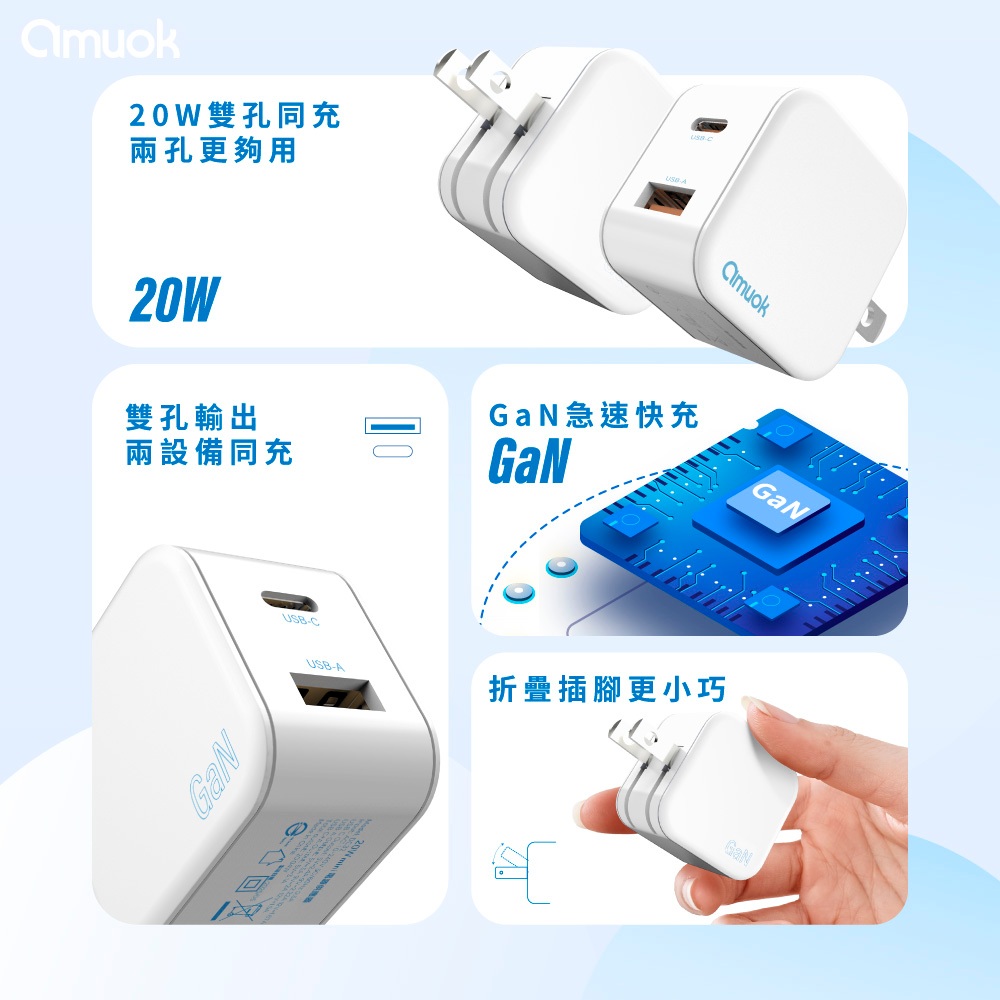 【amuok】20W mini 氮化鎵電源供應器 充電頭 充電器 豆腐頭【amuok】20W mini 氮化鎵電源供應器 充電頭 充電器 豆腐頭Cables, Chargers & ConvertersNawies 手機配件 | 代理 倍思 / Lisen / amuok