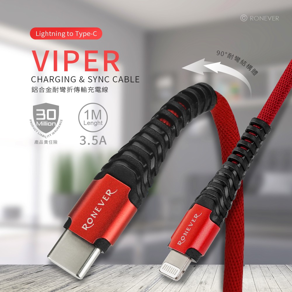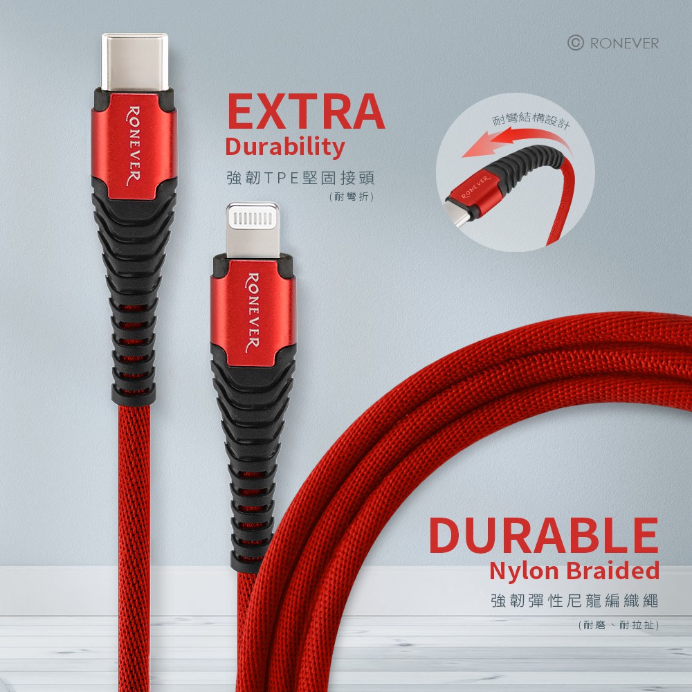 RONEVER VPC143 / 鋁合金耐彎折充電線(IOS)銀色|紅色Cables, Chargers & ConvertersRONEVER 官方品牌館