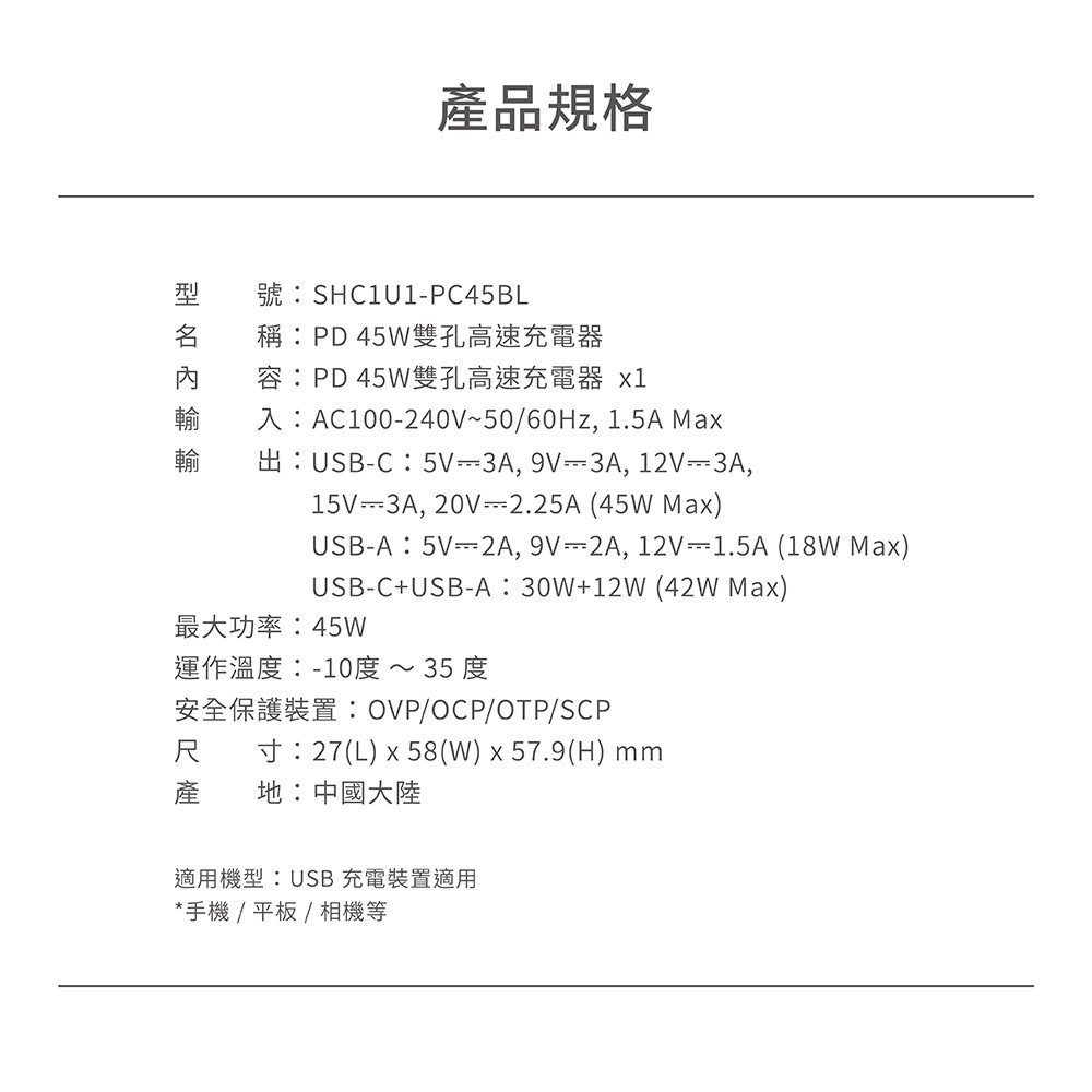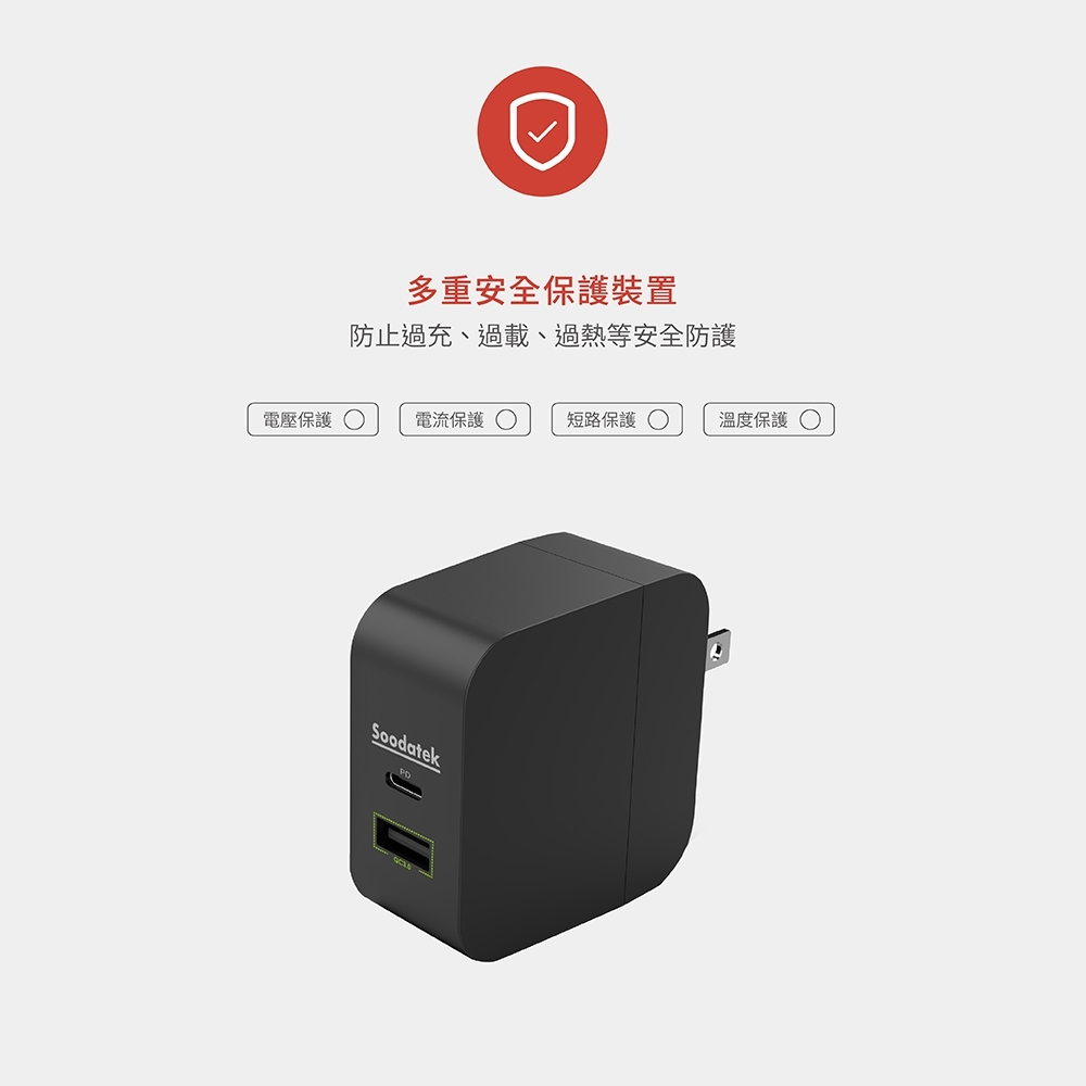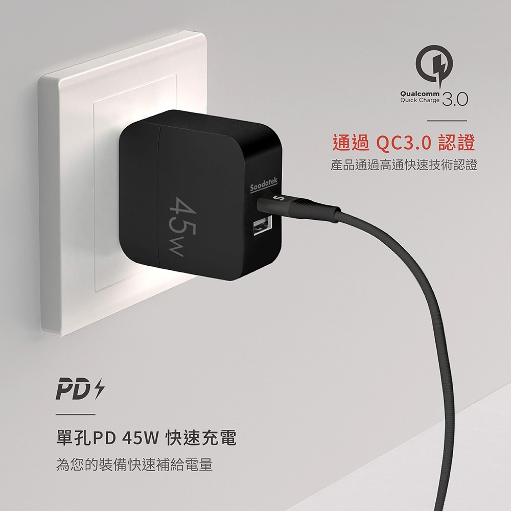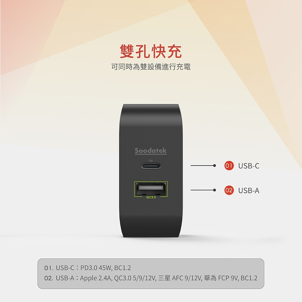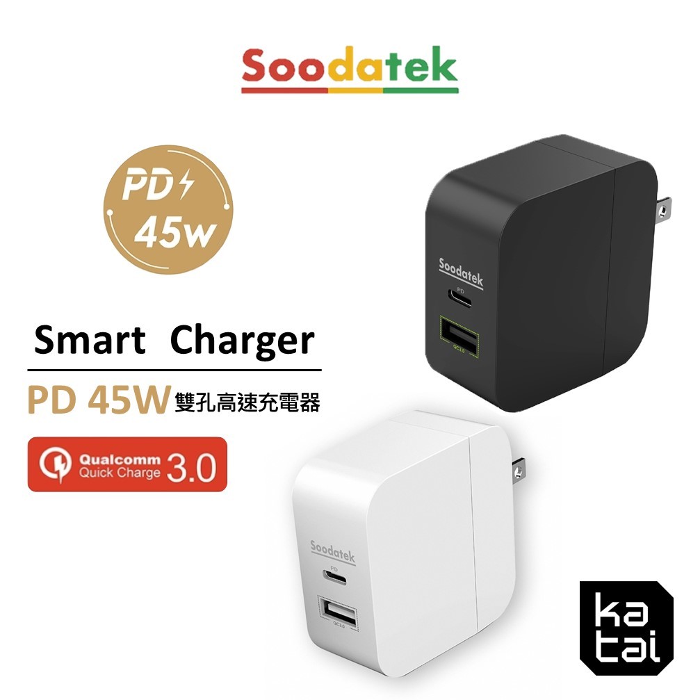 Soodatek PD 45W 雙孔高速充電器 折疊式插頭 方便攜帶 BSMI認證 可同時充兩台設備黑色|白色Cables, Chargers & ConvertersNB KALOC RENPHO Smate 品牌旗艦店【katai生活家電館】