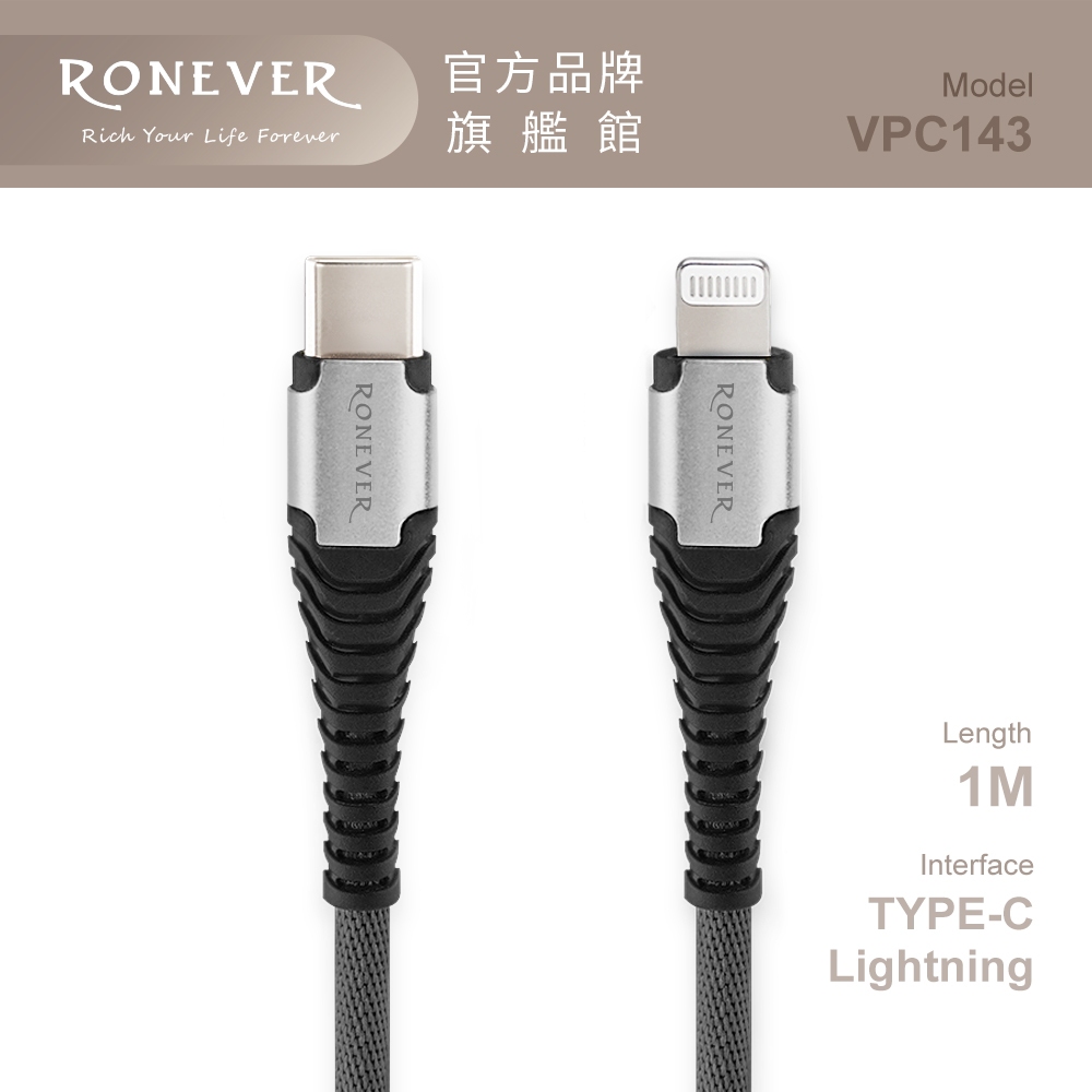 RONEVER VPC143 / 鋁合金耐彎折充電線(IOS)