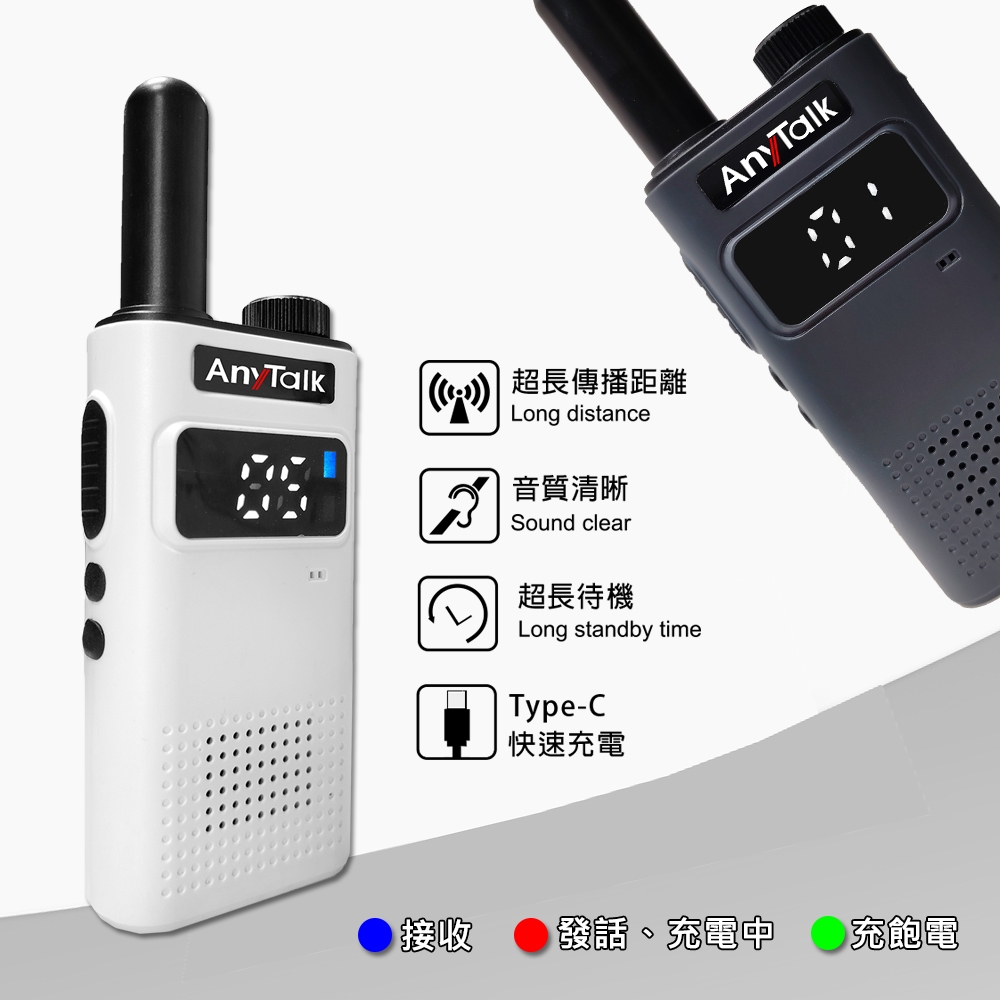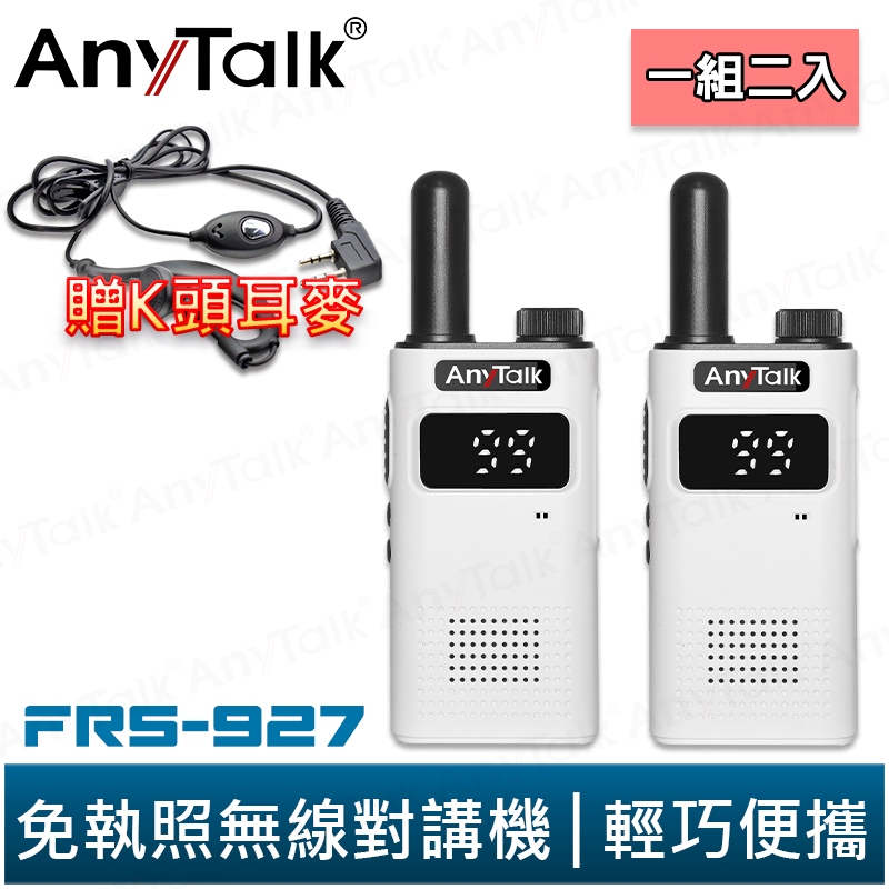 【AnyTalk】FRS-927 免執照無線對講機 白色 1組2入 TYPE-C 充電 99頻道 贈 K頭 耳麥 現貨