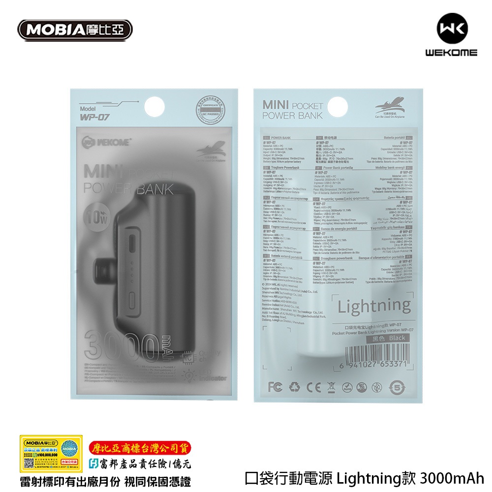 【快速出貨】WEKOME 維品特 口袋行動電源 Lightning版 3000mAh 迷你便攜 正版台灣公司貨黑色|白色|藍色Powerbanks & BatteriesREMAX 官方旗艦店