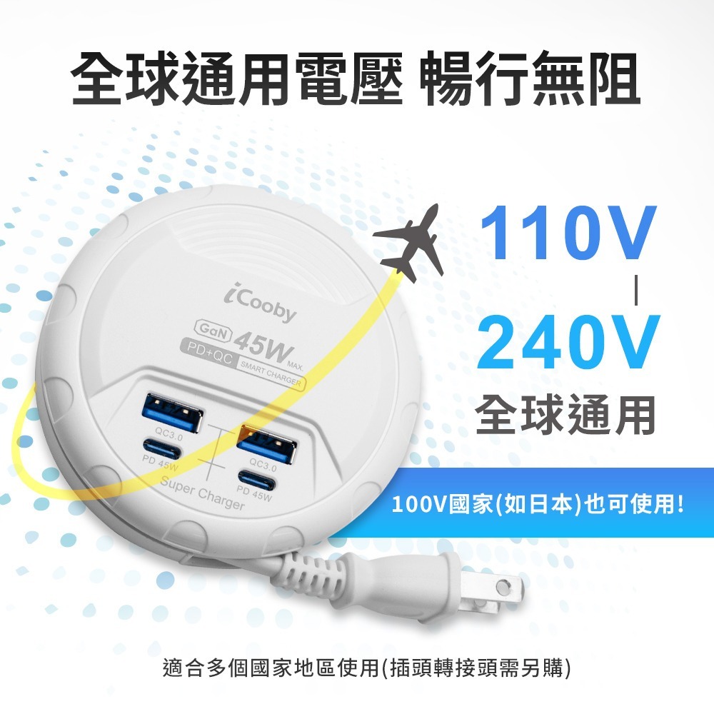 出國必備|iCooby 65W 氮化鎵快充頭|手機充電器|國際電壓|收線設計 豆腐頭|旅遊旅行必備|PD+QC快充沙色-45W|白色-65W|白色-45W|灰色-45W|黑色-35WCables, Chargers & ConvertersQD 酷弟3C