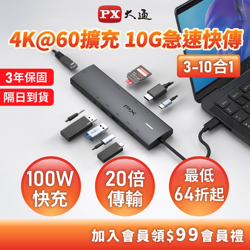PX大通 TYPEC HUB 多款 10合1 7合1 USB TYPE C HDMI 集線器 4K 100W 三年保固6合1✨25年新上市 CX6-22|10合1✨25年新上市CX10-22SR|7合1✨25年新上市 CX7-21S|7合1✨25年新上市 CX7-11SR|10合1✨網路獨家UCH-2210SRA|7合1✨網路獨家UCH-2110S|3合1✨輕便款 UCH13Cables, Chargers & ConvertersPX大通電子官方UHD 8K HDMI影音旗艦館