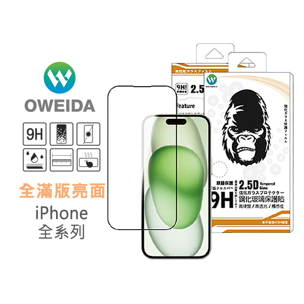Oweida iPhone全系列 亮面滿版鋼化玻璃貼 16e/16/15/14/13/12/11/X/Pro Max11pro/X/XS 共用|11/XR 共用|11ProMax/XsMax 共用|7/8 白 共用|7/8 黑 共用|7+/8+ 黑 共用|7+/8+ 白 共用|SE2/SE3 黑|12/12pro 共用|12Promax|12 Mini|16|16Plus|16Pro|16ProMax|13 Mini|14/13/13Pro/16e 共用|14Plus/13ProMax|非滿版(聊聊告知型號)|14Pro|14ProMax|15|15Plus|15Pro|15ProMaxScreen ProtectorsOweida歐威達