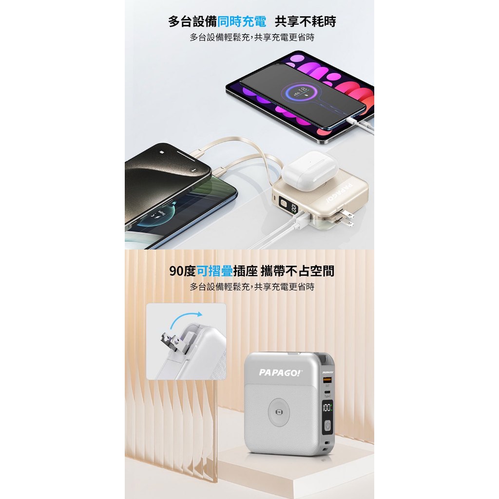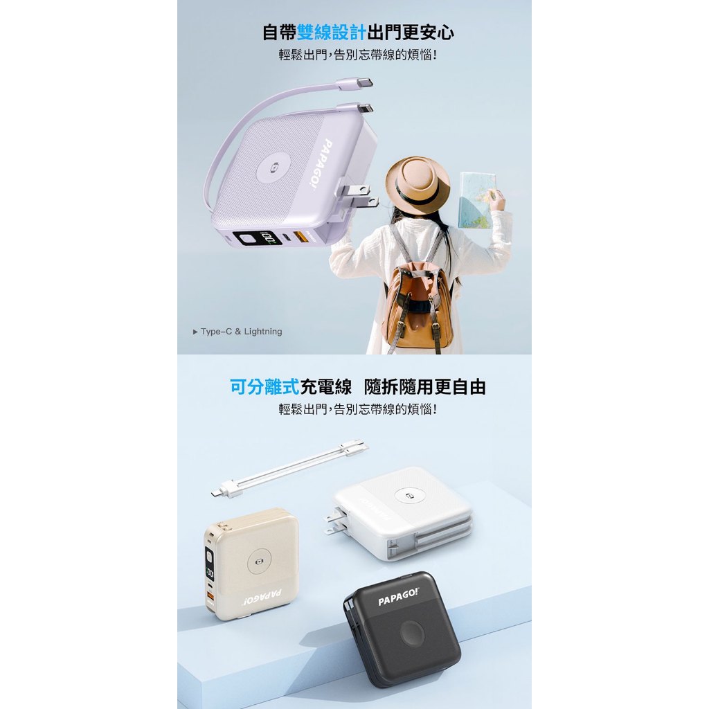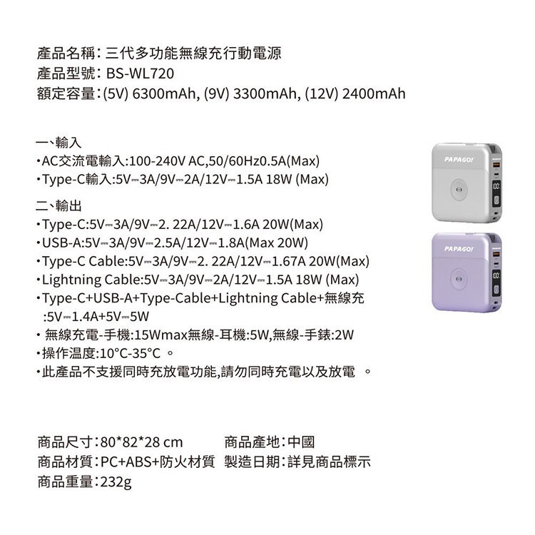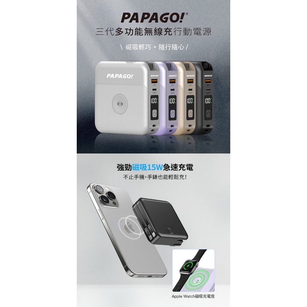 PAPAGO最強第三代多功能磁吸無線充電行動電源10000mAh(支援蘋果手錶充電)符合WH及CCC標示規範白色|紫色Powerbanks & BatteriesPAPAGO品牌旗艦館