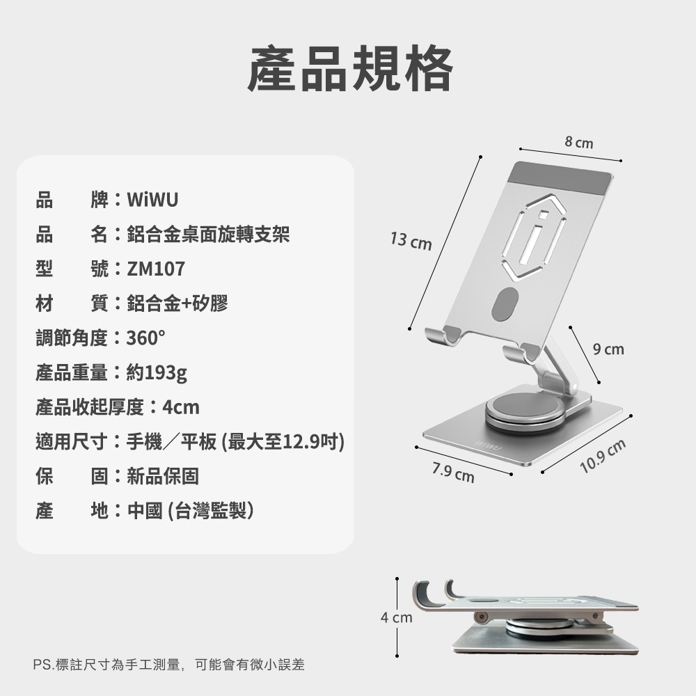 WiWU 鋁合金桌面旋轉支架 ZM107 桌面平版架 IPAD手機架 桌面折疊支架 直播手機架 手機支架 平板架-現貨WiWU 鋁合金桌面旋轉支架 ZM107 桌面平版架 IPAD手機架 桌面折疊支架 直播手機架 手機支架 平板架-現貨Phone GripsMR.COM 生活與你同在-歡迎禮贈品及批發團購洽談