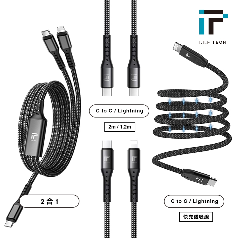 I.T.F PD67W+27W二合一/一對一/磁吸線 耐拉扯急速快充線iPhone線 Type-C線 -現貨保固一年ITF005 二合一(兩條都TYPE-C|ITF001 二合一耐拉扯急速快充線|C to C-1.2M|C to C-2M|C to Lightning-1.2M|C to Lightning-2M|磁吸線C to C|磁吸線C to LightningCables, Chargers & ConvertersMR.COM 生活與你同在-歡迎禮贈品及批發團購洽談