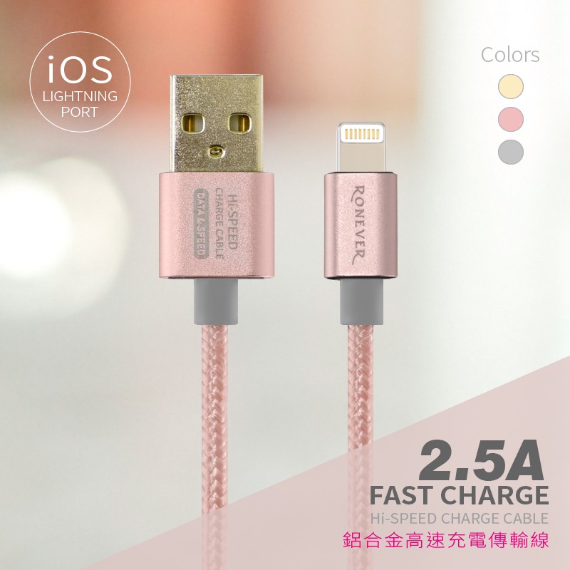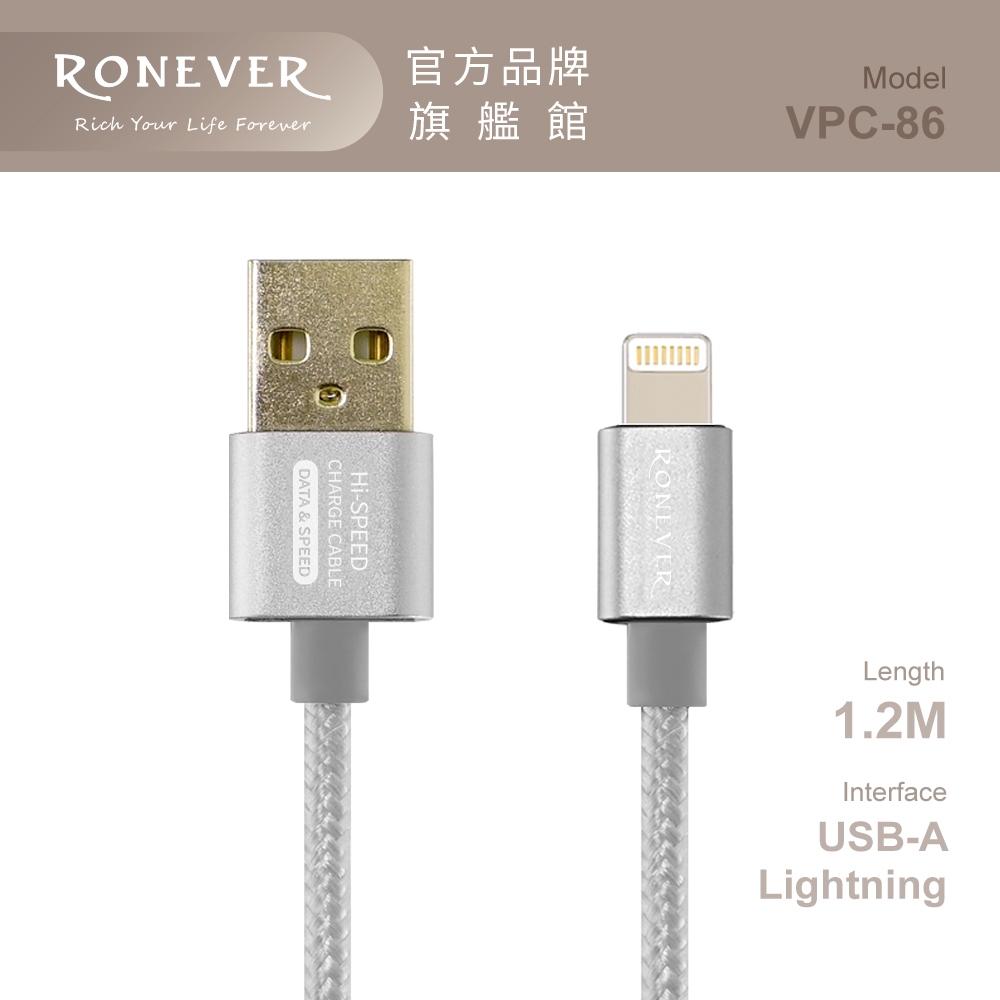 RONEVER VPC-86 / 2.5A鋁合金充電傳輸線(iOS)太空灰|玫瑰金-完售|金Cables, Chargers & ConvertersRONEVER 官方品牌館