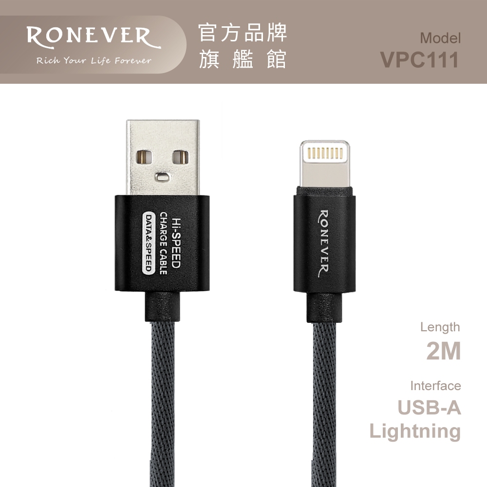 RONEVER VPC111 / iOS鋁合金編織充電線2MiOS鋁合金編織充電線2MCables, Chargers & ConvertersRONEVER 官方品牌館