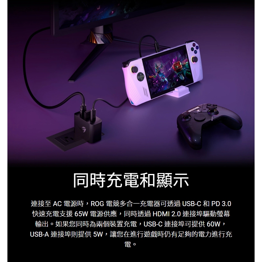 ROG 電競多合一充電器 全功率充電 支援快速充電 多裝置相容 支援外接螢幕 方便攜帶 充電頭 快充頭 豆腐頭 插頭主商品Cables, Chargers & ConvertersROG 華碩授權店 | 電競周邊館