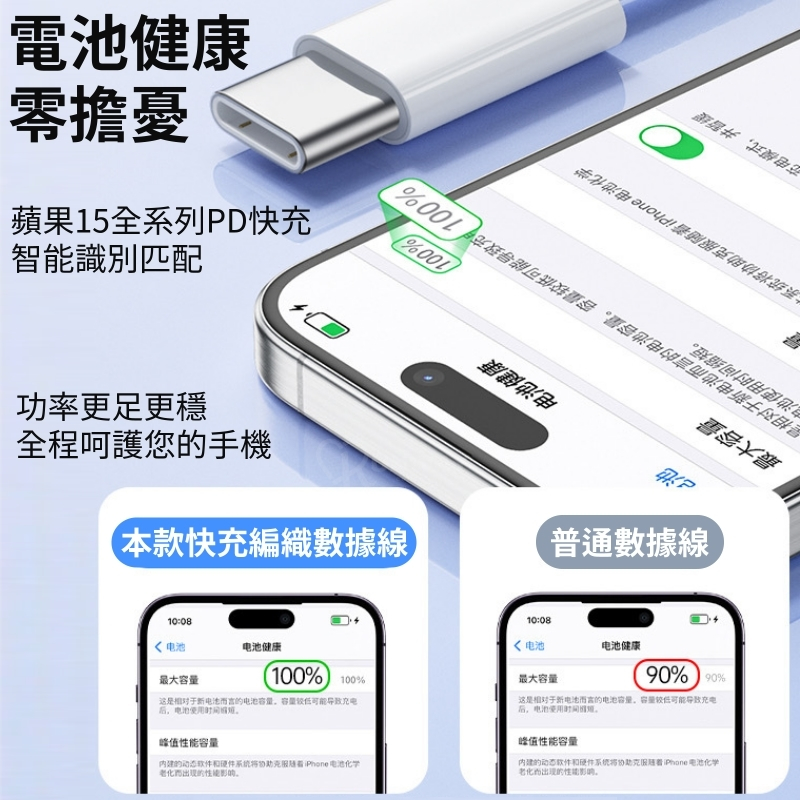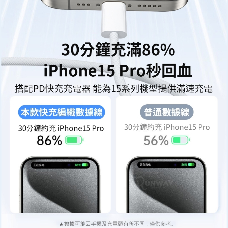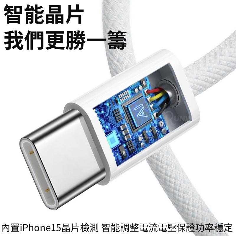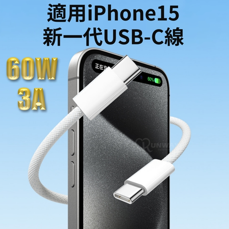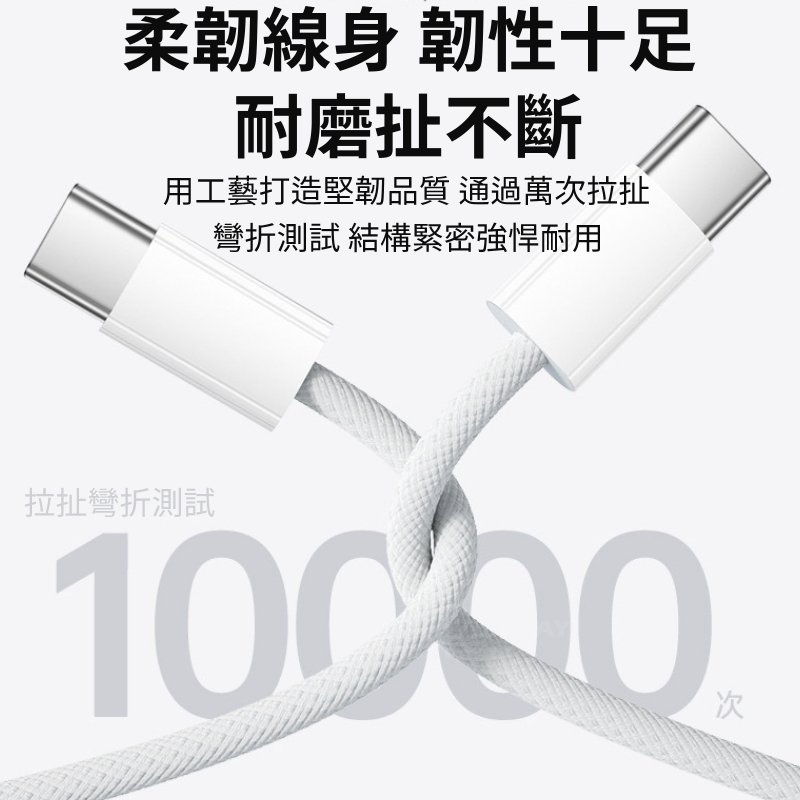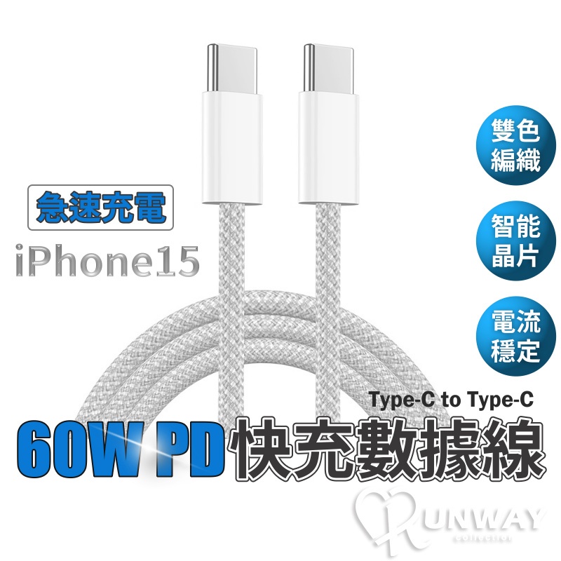 60W PD 3A 快充線 編織線 適用蘋果 iPhone15 雙 Type-C 充電線 傳輸線 抗拉扯 快充數據線Type-C to Type-C,白灰-1MCables, Chargers & ConvertersRunway Collection