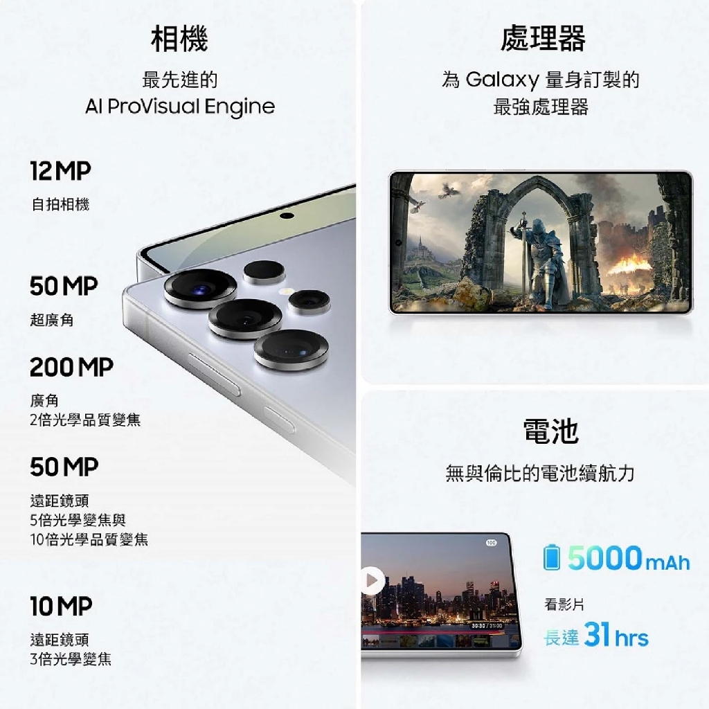 Samsung 三星 Galaxy S25 Ultra (12G/256G) 全新 公司貨 256GB 保固 手機鈦黑|鈦灰|鈦空藍|鈦銀Q哥 3C資訊通訊生活旗艦館
