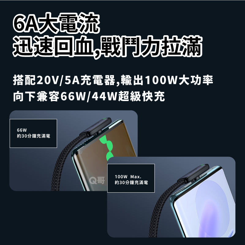 • 麥多多 斑馬系列 PD快充 彎頭 快充線 適用 蘋果 安卓 充電線 編織線 100W Type-C 6A 傳輸 MD35
