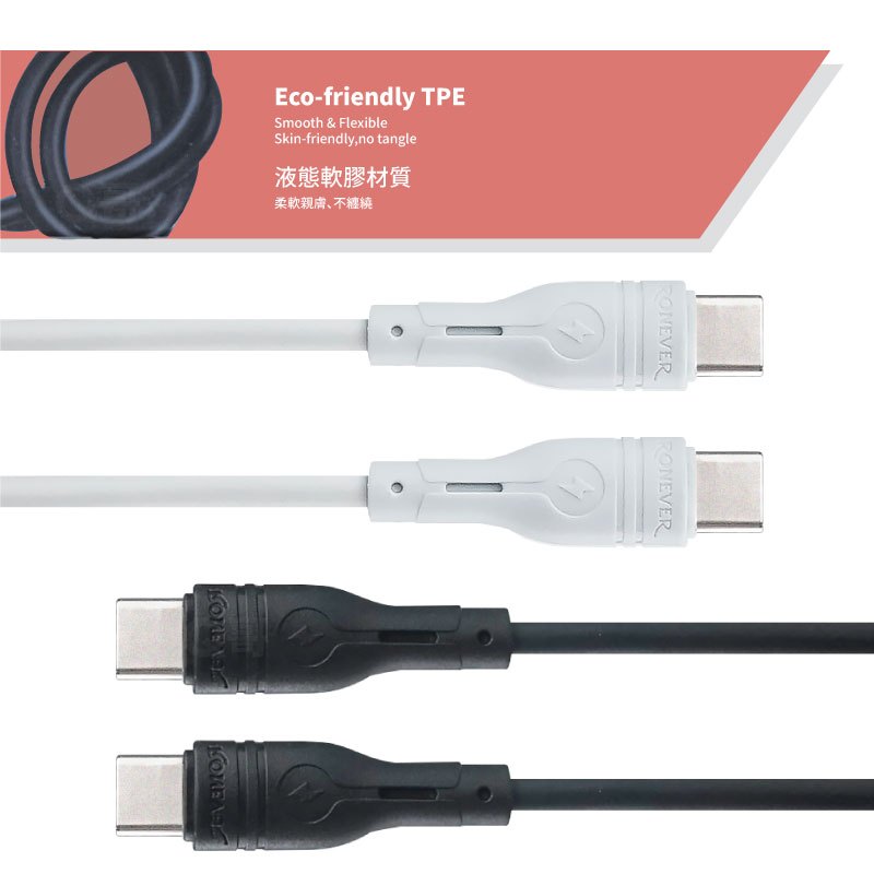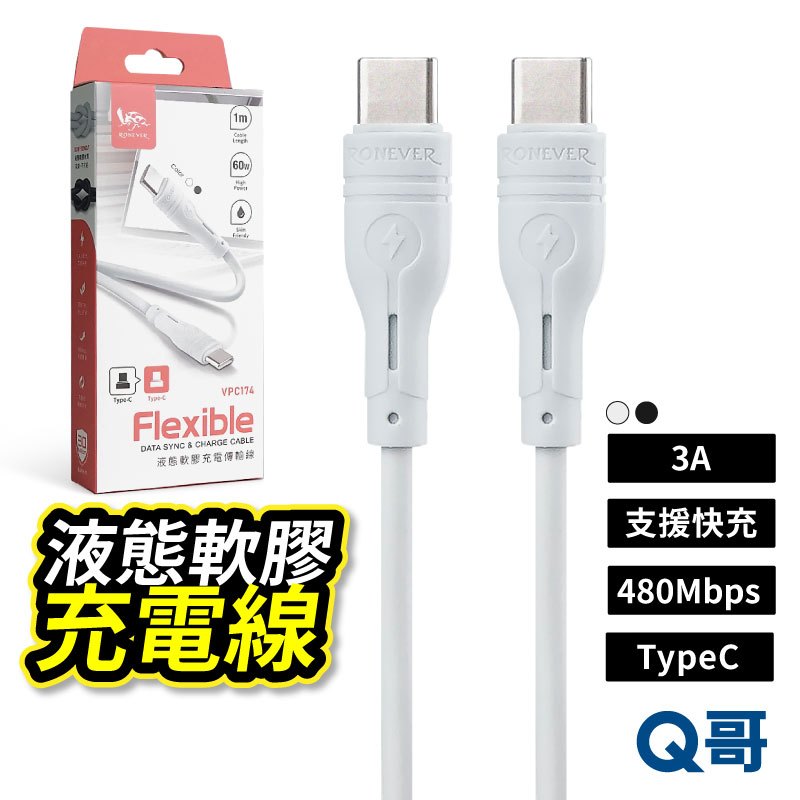 RONEVER 液態軟膠充電傳輸線 Type C 3A 傳輸線 快充線 充電線 雙Type C 液態線 RV025Type C to Type C 白|Type C to Type C 黑Cables, Chargers & ConvertersQ哥 旗艦商城|最專業的保護貼手機配件