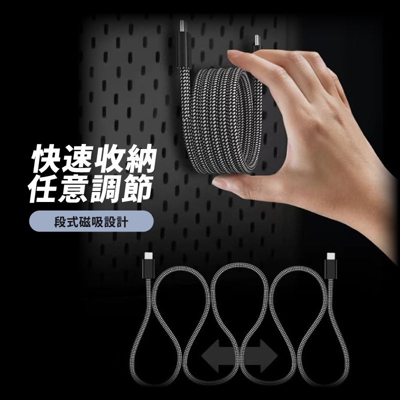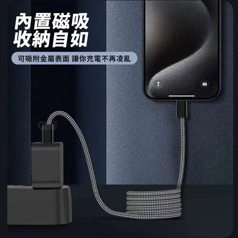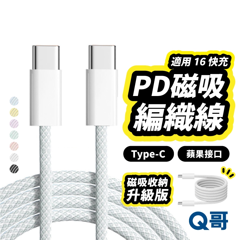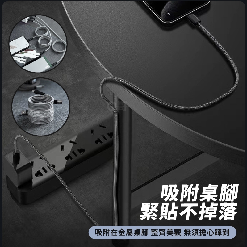 • 隔日到貨 Q哥 磁吸收納線 PD 快充線 編織線 磁吸線 適用 TypeC 三星 安卓 OPPO 充電線 收納 LG98