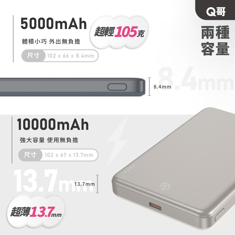 有Wh標示 隔日到貨 Q哥 超薄磁吸快充 行動電源 MagSafe 磁吸 PD快充 TypeC 大容量 行充 P0035000mAh(18.5Wh)|太空灰|5000mAh(18.5Wh)|白鈦|5000mAh(18.5Wh)|原鈦|5000mAh(18.5Wh)|海軍藍|5000mAh(18.5Wh)|黑鈦|5000mAh(18.5Wh)|櫻花粉|10000mAh(37Wh)|太空灰|10000mAh(37Wh)|白鈦|10000mAh(37Wh)|原鈦|10000mAh(37Wh)|海軍藍|10000mAh(37Wh)|黑鈦|10000mAh(37Wh)|櫻花粉|Qi2 快充-5000mAh|原鈦|Qi2 快充-5000mAh|太空灰|Qi2 快充-5000mAh|白鈦|Qi2 快充-5000mAh|黑鈦|Qi2 快充-5000mAh|薰衣紫|Qi2 快充-5000mAh|櫻花粉|Qi2 快充-10000mAh|原鈦|Qi2 快充-10000mAh|太空灰|Qi2 快充-10000mAh|白鈦|Qi2 快充-10000mAh|黑鈦|Qi2 快充-10000mAh|薰衣紫|Qi2 快充-10000mAh|櫻花粉Powerbanks & BatteriesQ哥 旗艦商城|最專業的保護貼手機配件