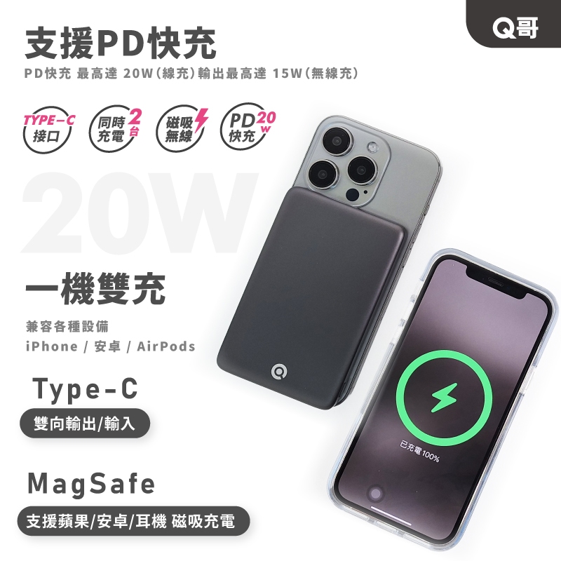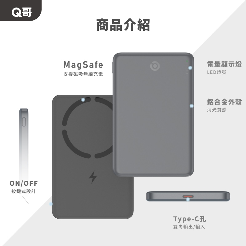• 有Wh標示 隔日到貨 Q哥 超薄磁吸快充 行動電源 MagSafe 磁吸 PD快充 TypeC 大容量 行充 P003