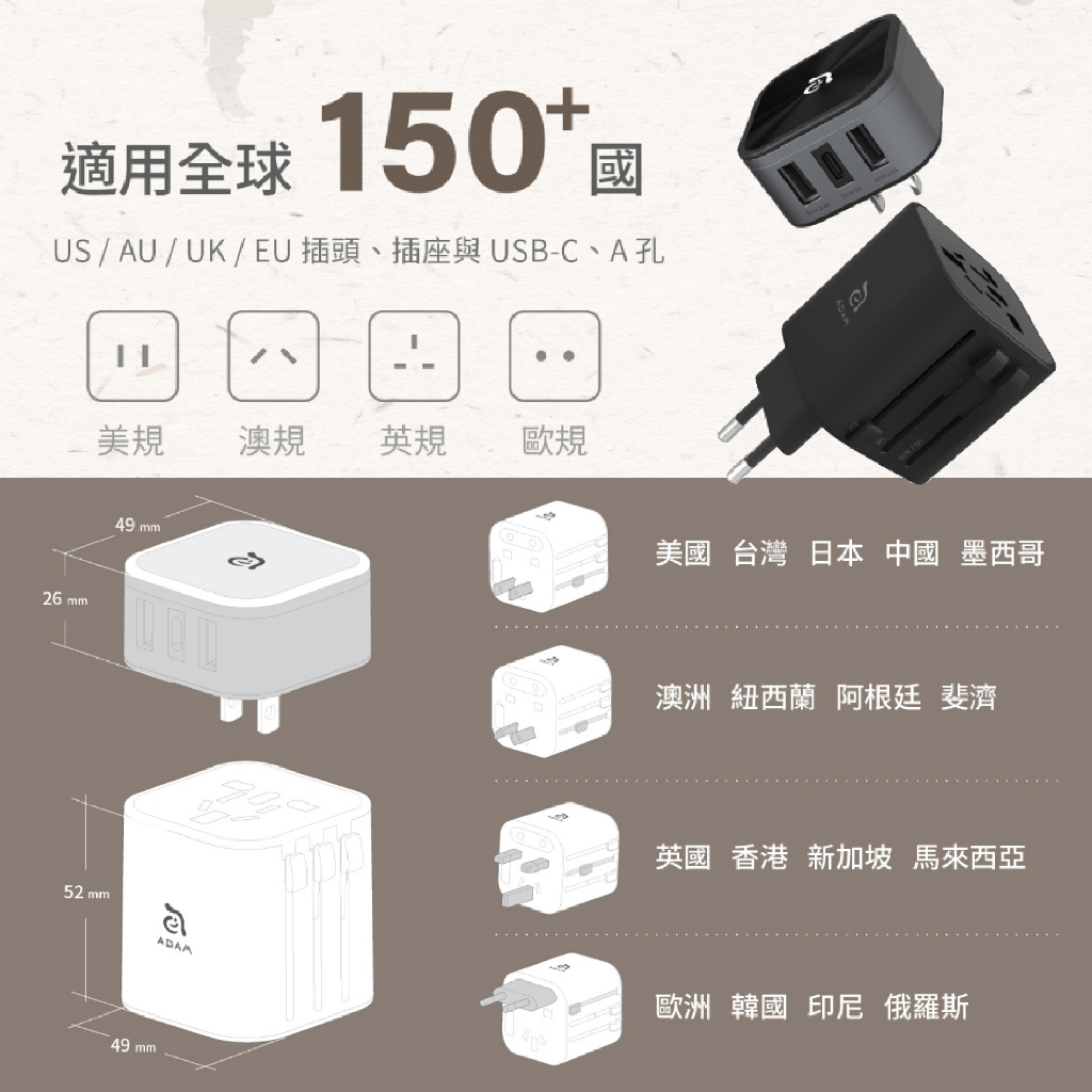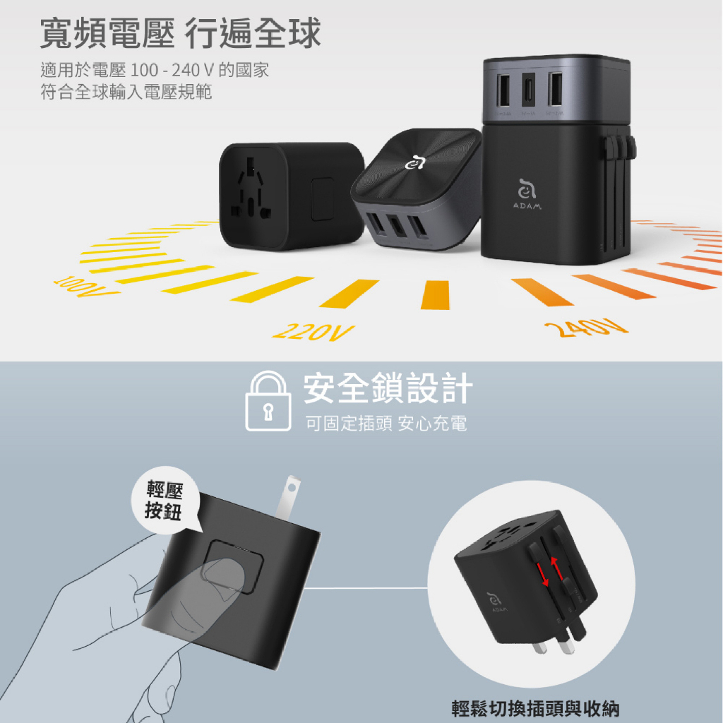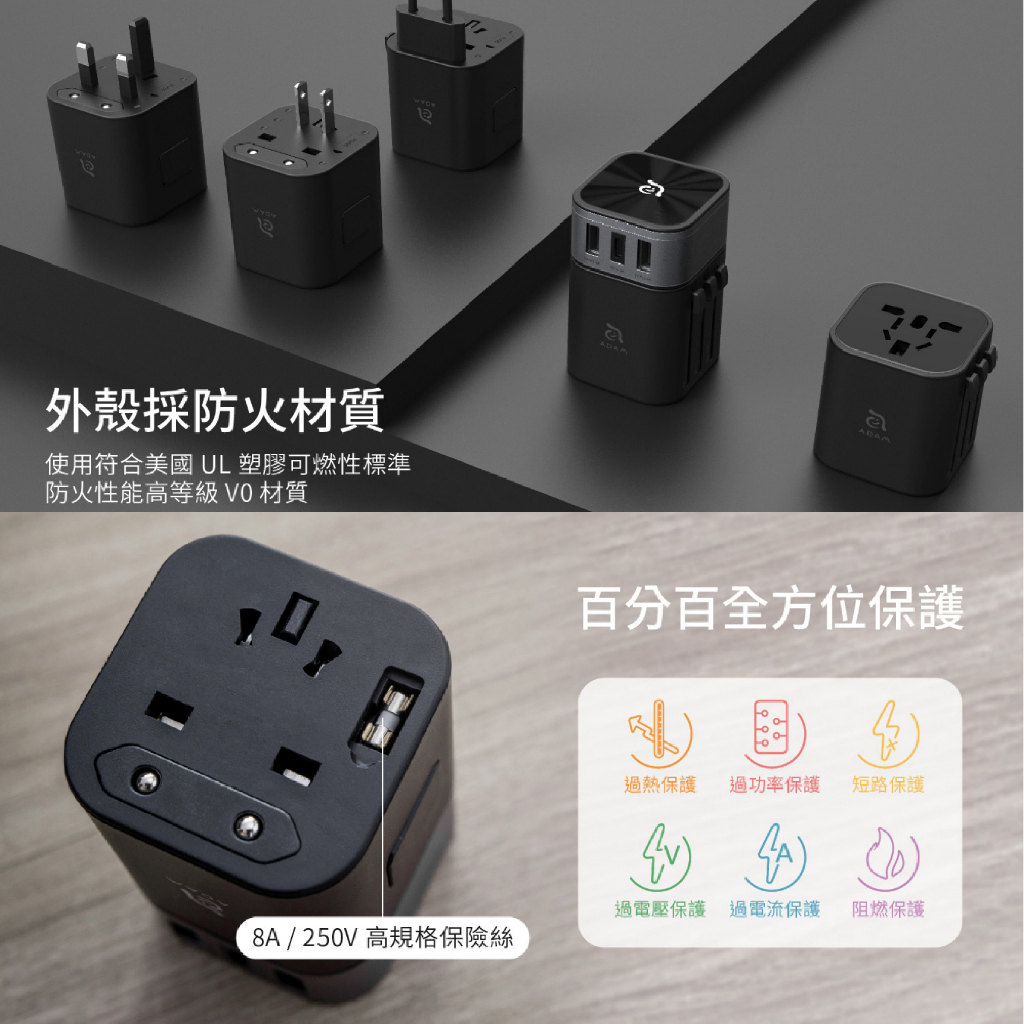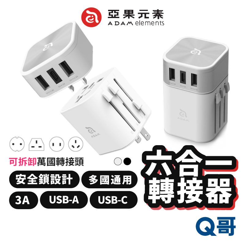 ADAM亞果元素 OMNIA T3 六合一多功能USB萬用轉接頭充電器 萬國轉接頭 出國旅遊插座 旅行萬用插頭 AD10OMNIA T3 萬用轉接頭充電器 黑|OMNIA T3 萬用轉接頭充電器 白Cables, Chargers & ConvertersQ哥 旗艦商城|最專業的保護貼手機配件