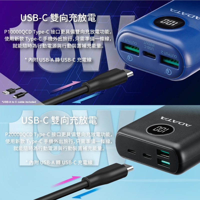 ADATA 威剛 PD 快充 QC3.0 大容量 行動電源 20000mAh 18W 行充 行動充 一年保固 ADT0420000 mAh 藍|20000 mAh 白|20000 mAh 黑|10000 mAh 白|10000 mAh 藍|10000 mAh 黑Powerbanks & BatteriesQ哥 旗艦商城|最專業的保護貼手機配件