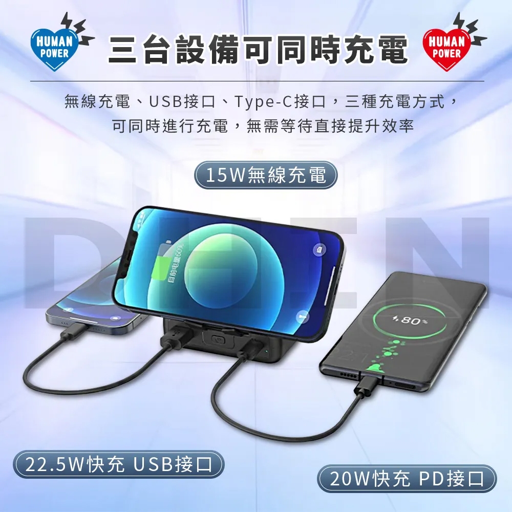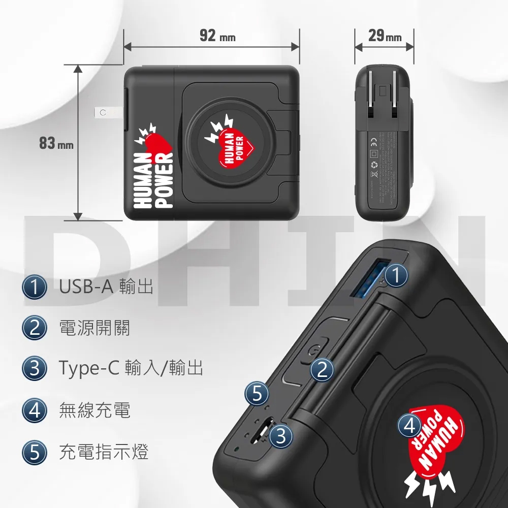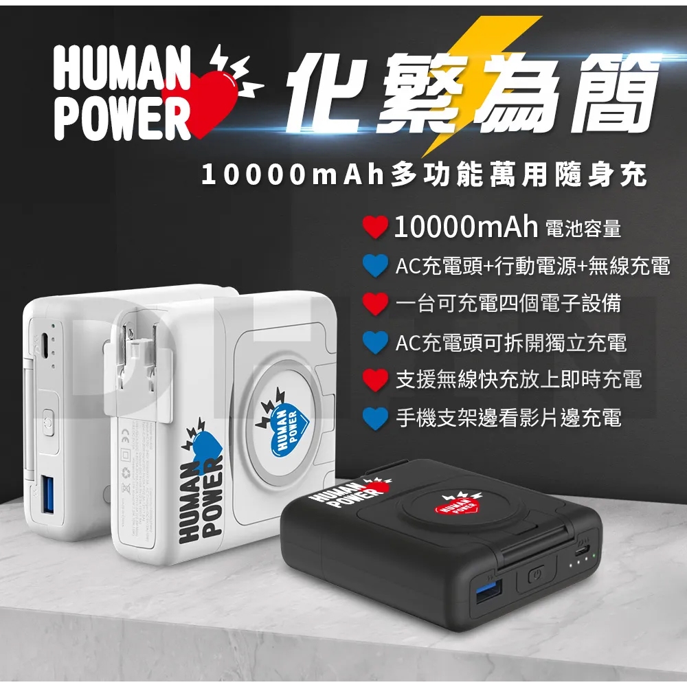 【HUMAN POWER】10000mAh多功能萬用隨身充 行動電源 HU-033黑色|白色Powerbanks & Batteriesmsc微傳科技