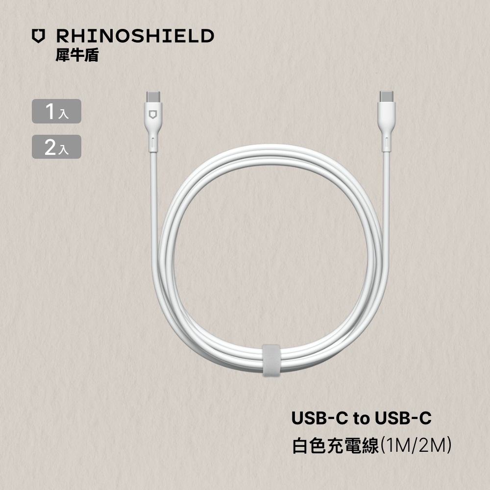 犀牛盾 USB-C to USB-C 白色傳輸線/充電線(1公尺/2公尺)