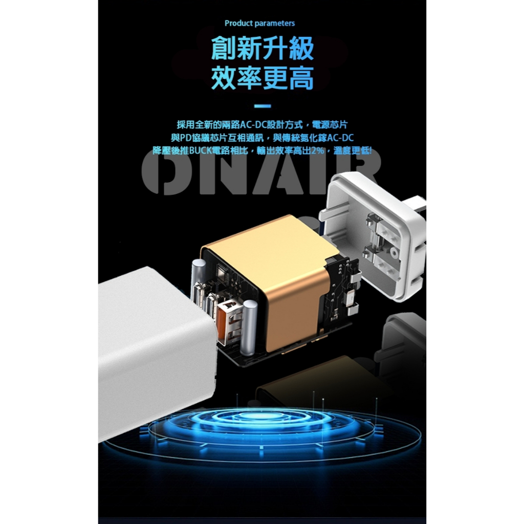 ONAIR 65W 摺疊 插頭 GaN 氮化鎵 充電頭 快充頭 USB Type-C 快充 三孔 IPhone