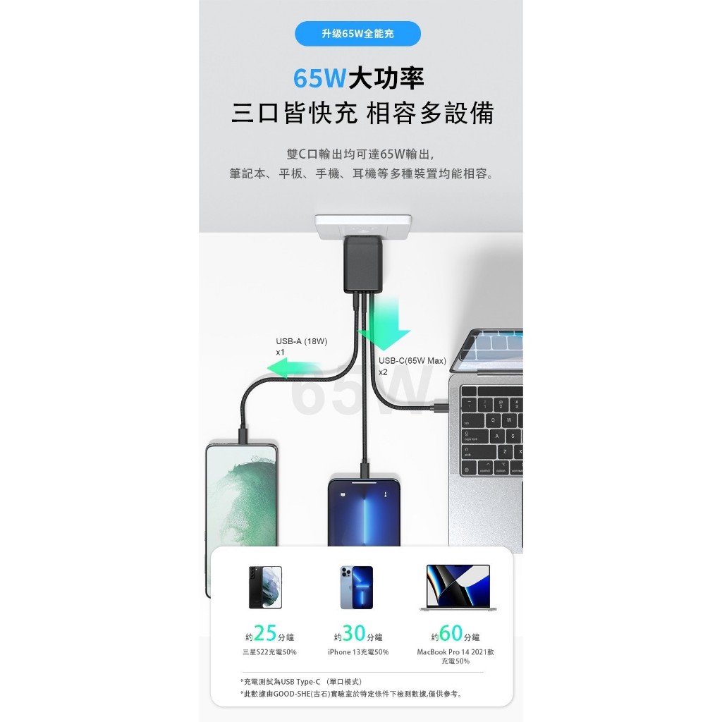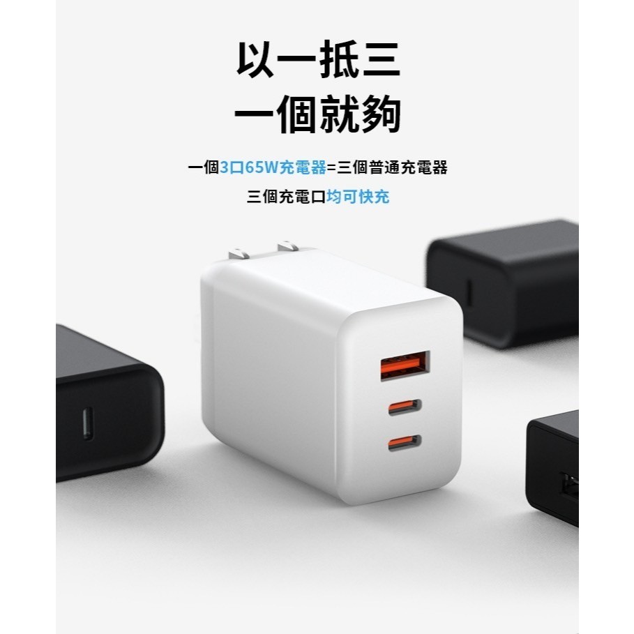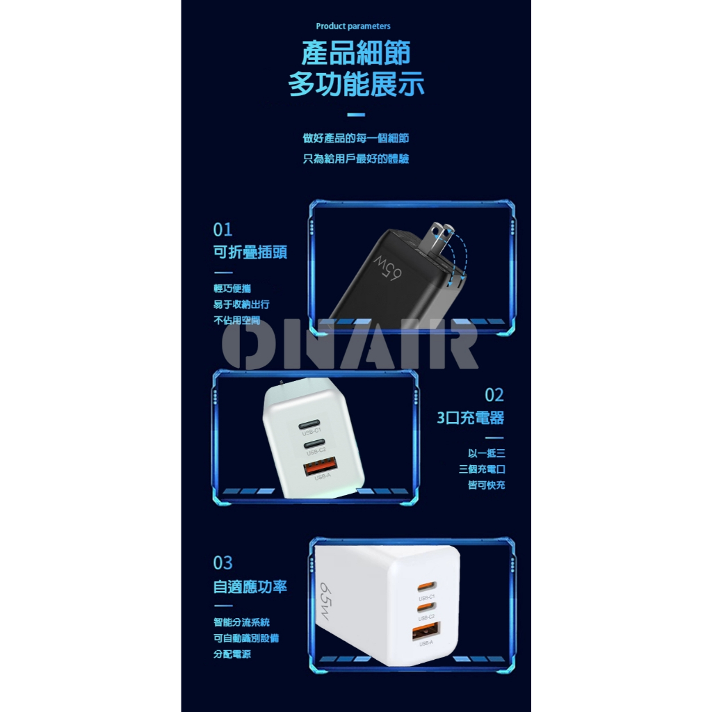 • ONAIR 65W 摺疊 插頭 GaN 氮化鎵 充電頭 快充頭 USB Type-C 快充 三孔 IPhone