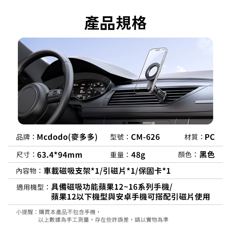 麥多多 鷹鉤系列 出風口車載磁吸支架 手機支架 車用支架CM-626 黑色Phone GripsSHOWHAN手機周邊生活用品旗艦店