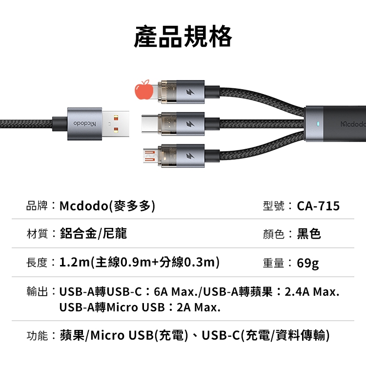 麥多多 水母系列 全能充 一拖三 二拖三 快充線 充電線 支援i16/15 台灣現貨 隔日配 快速出貨 100W 66W一拖三 CA-715,1.2m黑色|二拖三 CA-726,1.2m黑色Cables, Chargers & ConvertersSHOWHAN手機周邊生活用品旗艦店