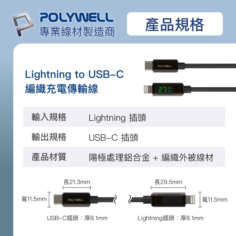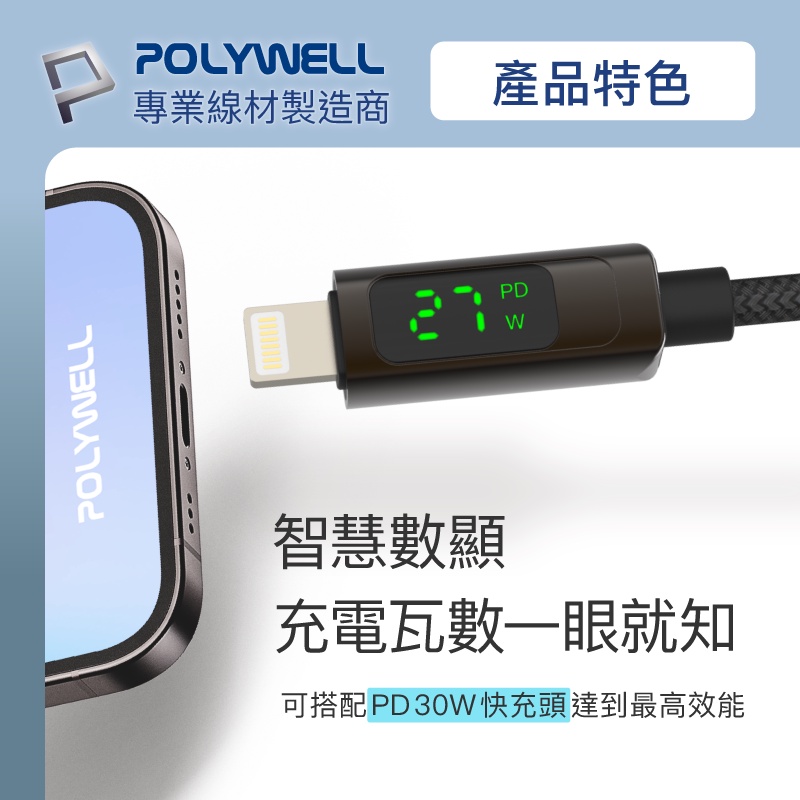 POLYWELL Lightning To Type-C 數位顯式PD快充線 適用iPhone 寶利威爾 台灣現貨2米|1米Cables, Chargers & ConvertersPOLYWELL寶利威爾官方旗艦店