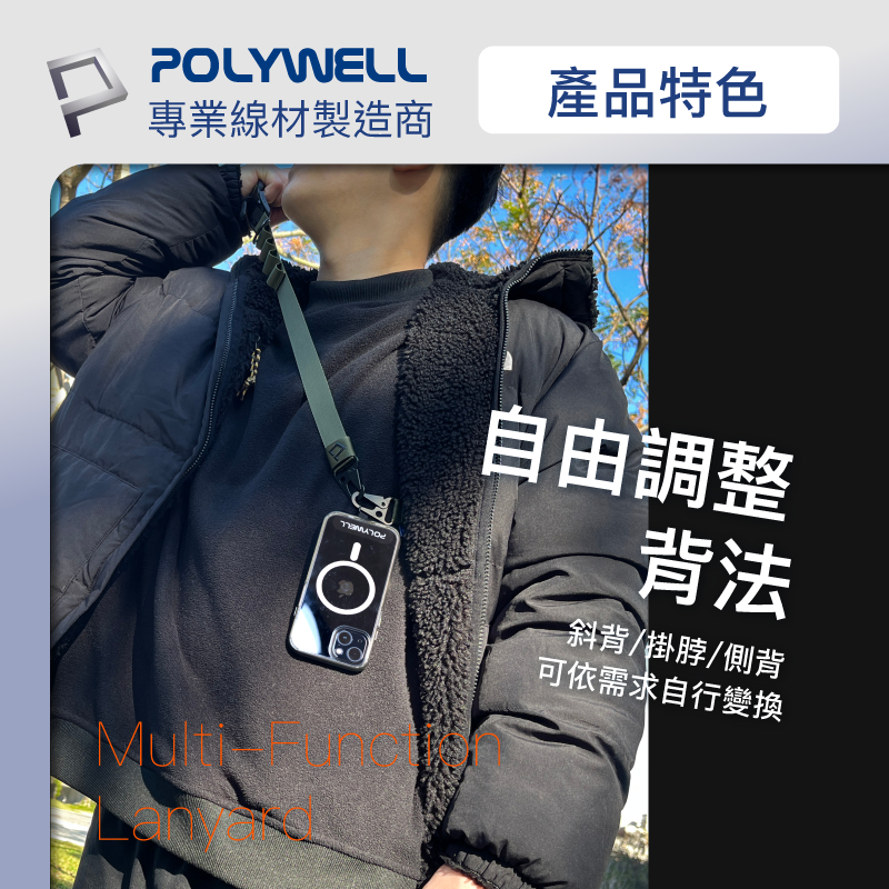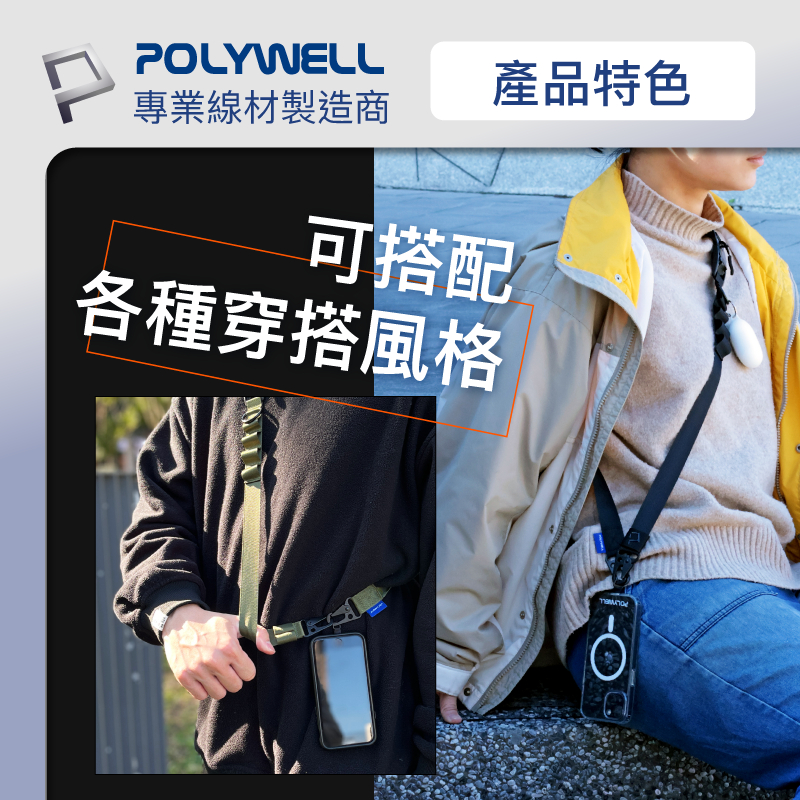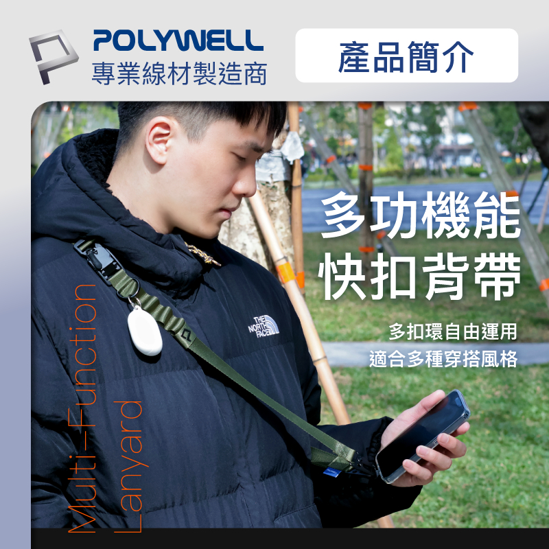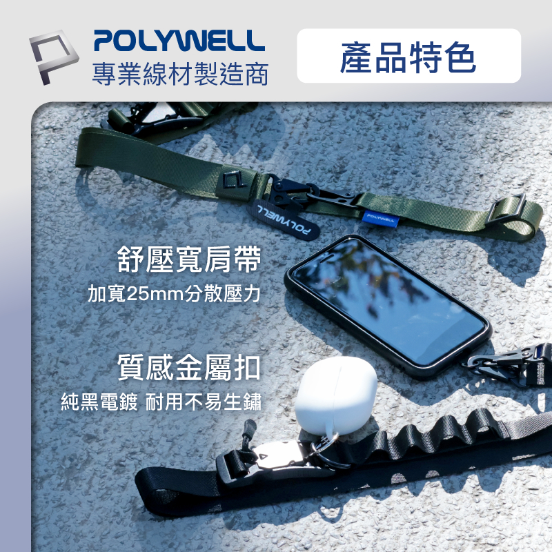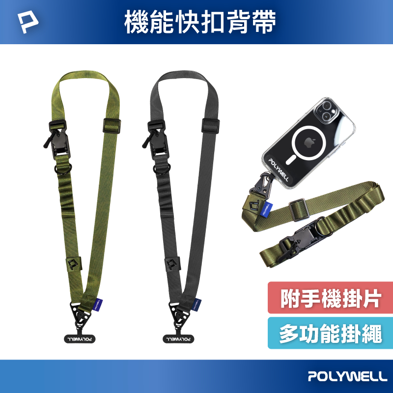 POLYWELL 機能快扣型手機背帶 掛繩 吊繩 黑色 軍綠色 消光黑金屬件 高質感 可頸掛斜背防丟 寶利威爾 台灣現貨黑色|軍綠色Phone Straps & KeychainsPOLYWELL寶利威爾官方旗艦店