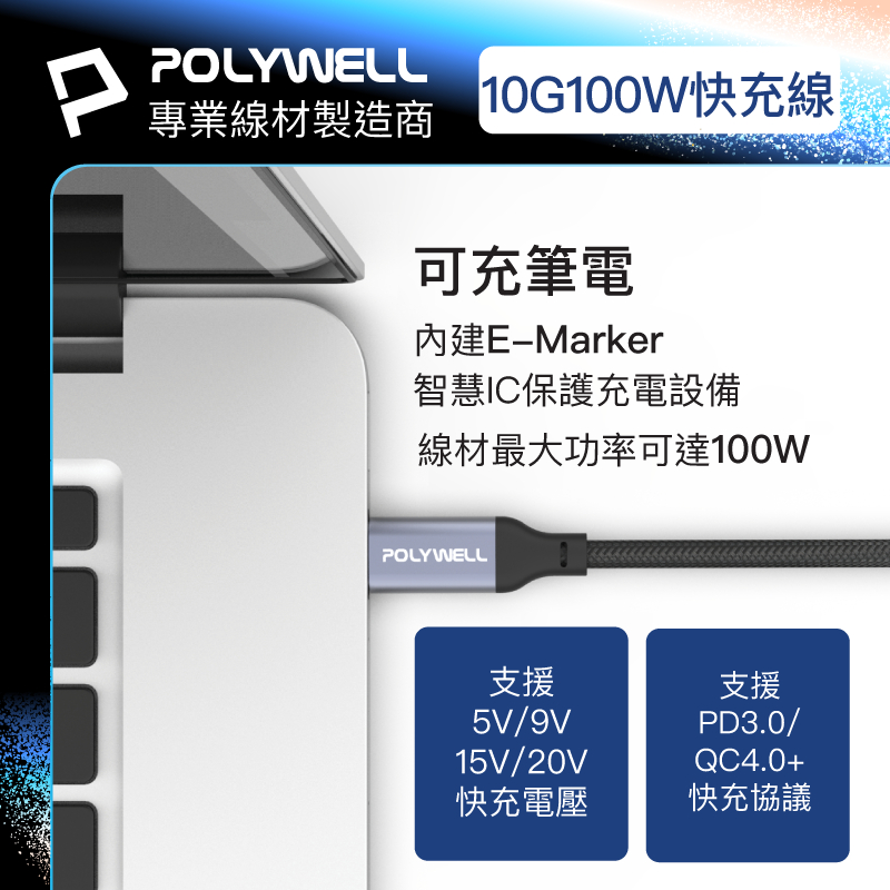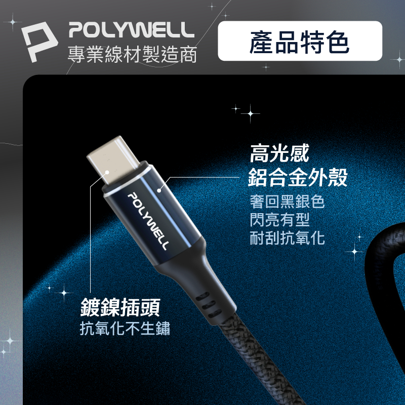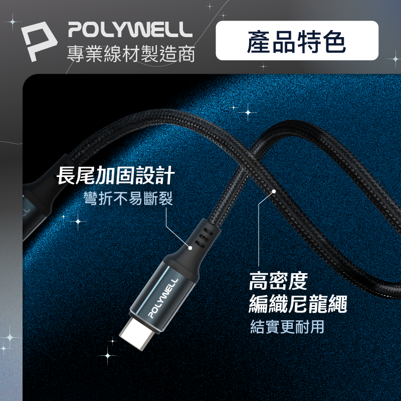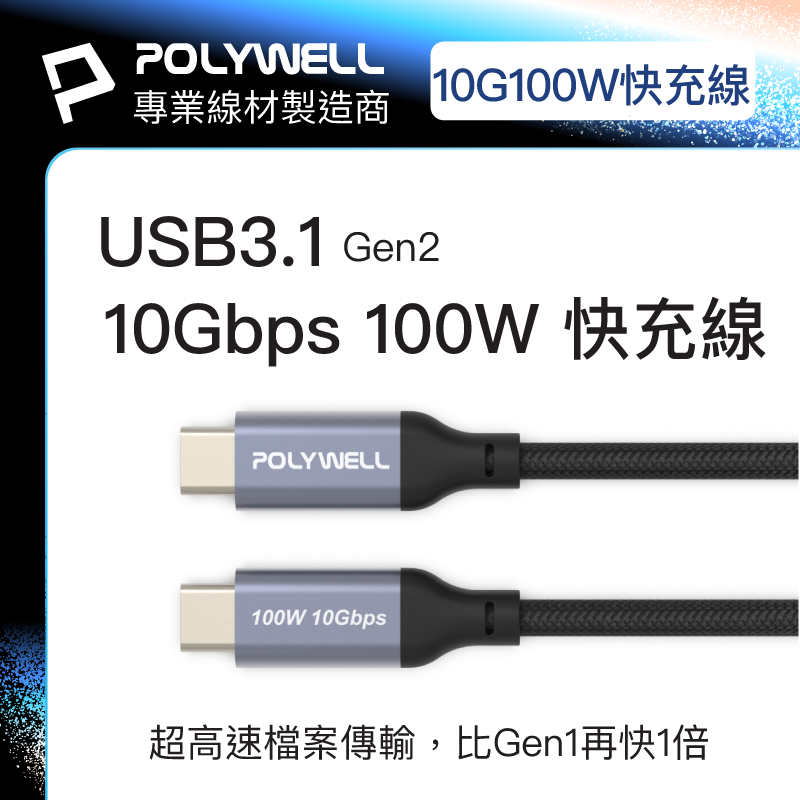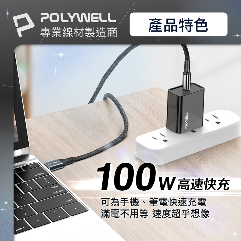 POLYWELL 星光系列 USB3.2 Gen2x2 20G 100W Type-C高速傳輸充電線 寶利威爾 台灣現貨一般款,1米/100公分|彎頭款,1米/100公分Cables, Chargers & ConvertersPOLYWELL寶利威爾官方旗艦店