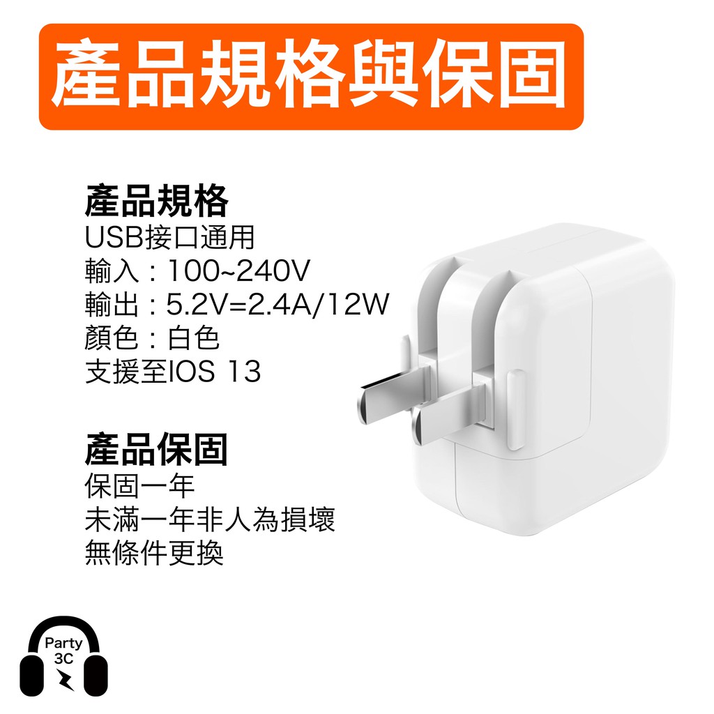 iPad 2.4A 充電器 12W IPad Air IPhone 平板 充電頭 插頭 旅充 插座 apple適用(2.4A)12W ipad充電器|(0.2米) USB充電線|(0.5米) USB充電線|(1米) USB充電線|(2米) USB充電線Cables, Chargers & ConvertersPARTY 3C 手機保護貼鋼化膜專賣店