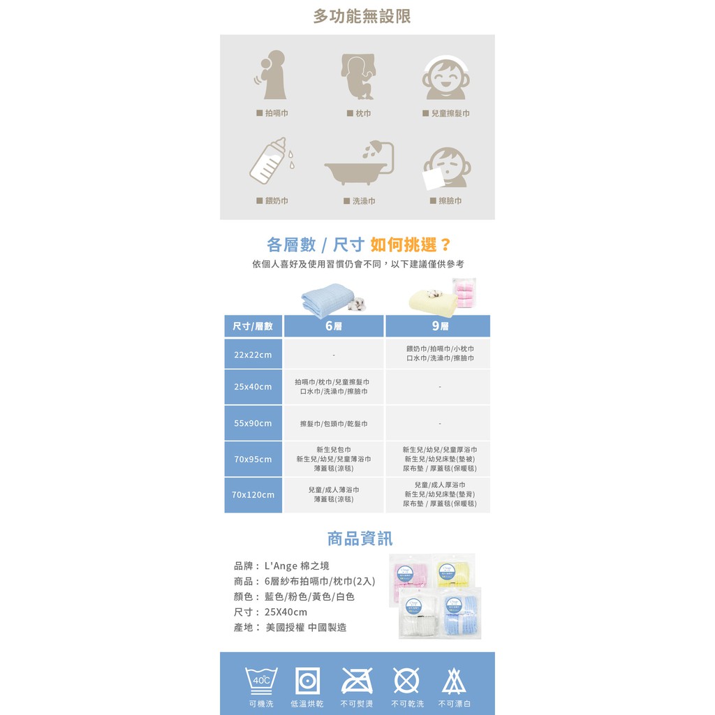 L’Ange 棉之境 6層紗布枕巾/拍嗝巾 25x40cm 2入組 (多色可選)奶茶色(2入組)|綠色(2入組)|灰色(2入組)|白色(2入組)|黃色(2入組)|粉色(2入組)|藍色(2入組)BreastfeedingnanaBABY寶寶生活精品