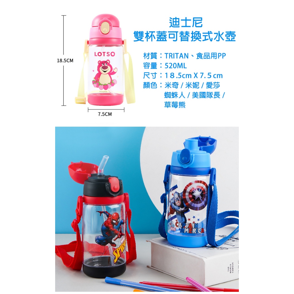 迪士尼/漫威卡通明星 兒童 吸管式/直飲式 兩用背帶水壺米奇|米妮|蜘蛛人|美國隊長|愛莎|配件*3組(吸嘴頭+吸管)不含水壺UtensilsSTAR BABY 官方直營店