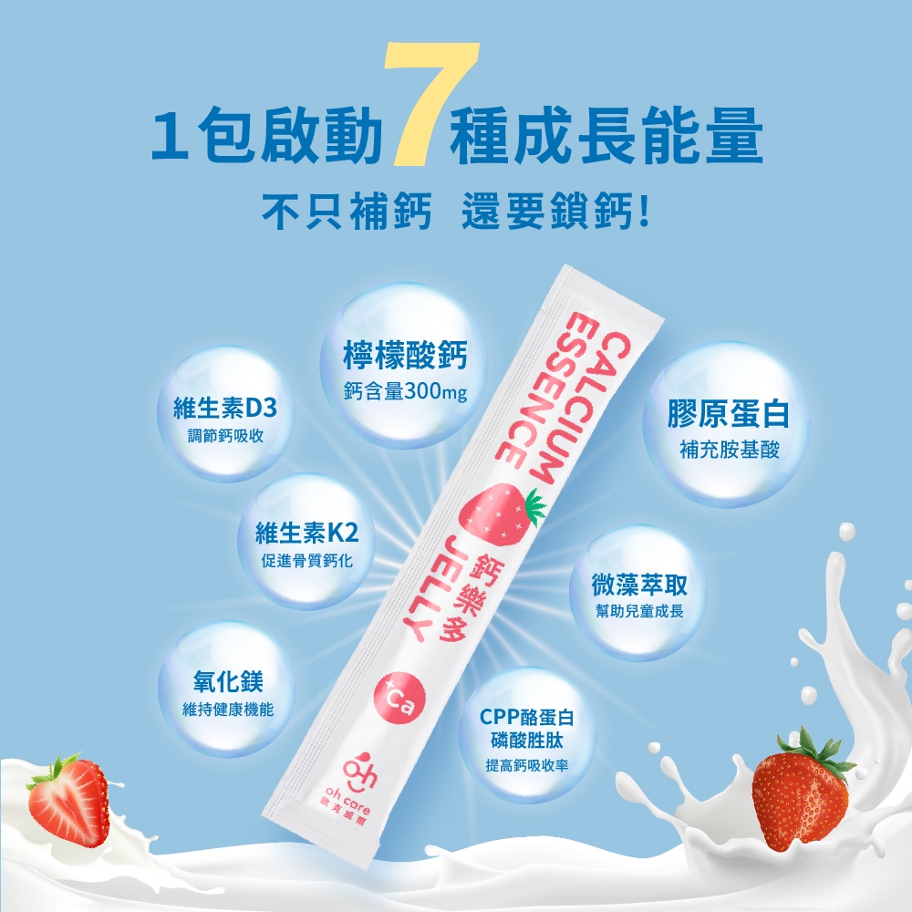 【oh care 歐克威爾】鈣樂多成長果凍草莓優格15入/盒|鈣果凍 兒童補鈣推薦 優格風味 成長果凍 補鈣首選三盒組(45條)|一盒(15條)Baby Vitamins & Supplementsoh care 歐克威爾 官方旗艦店