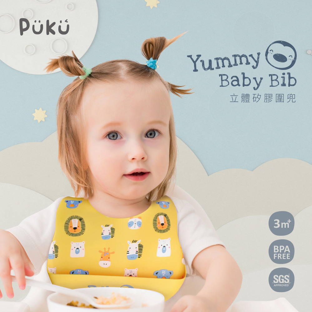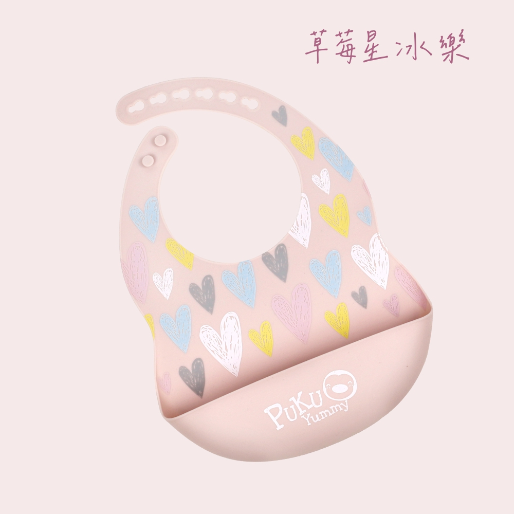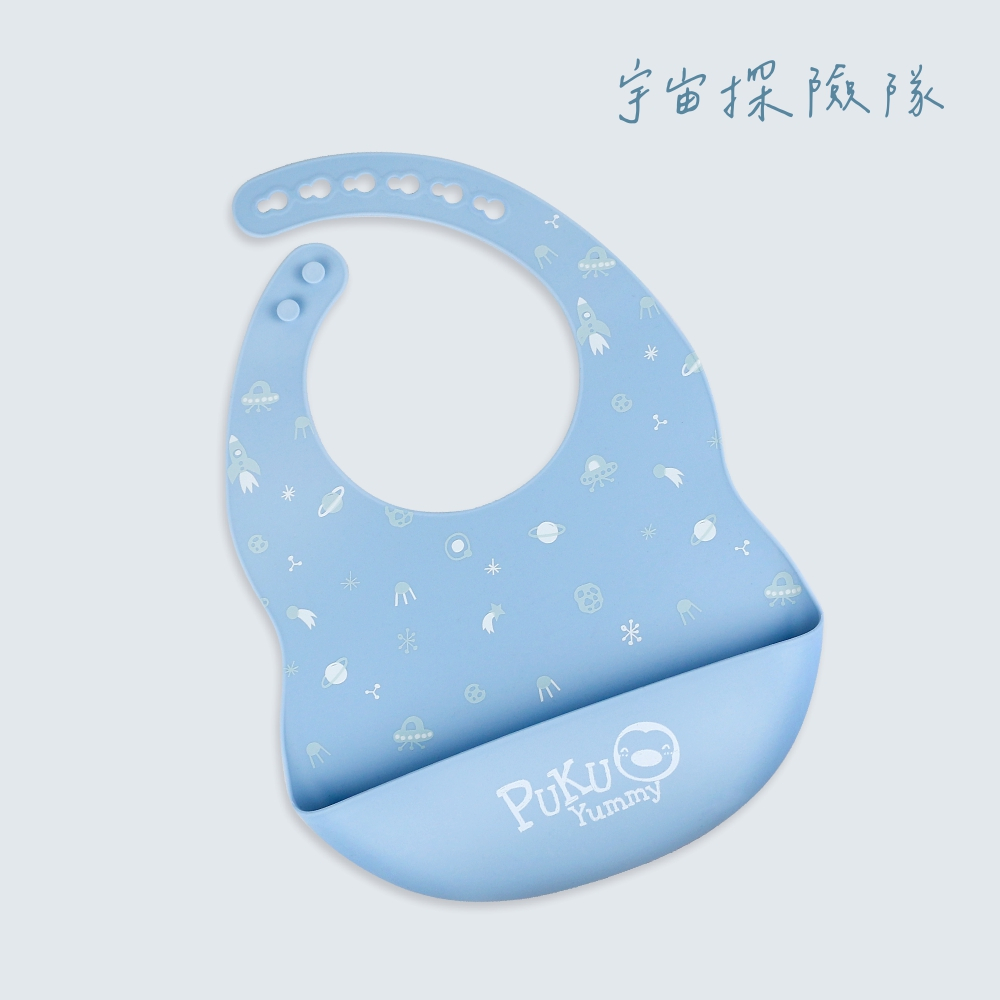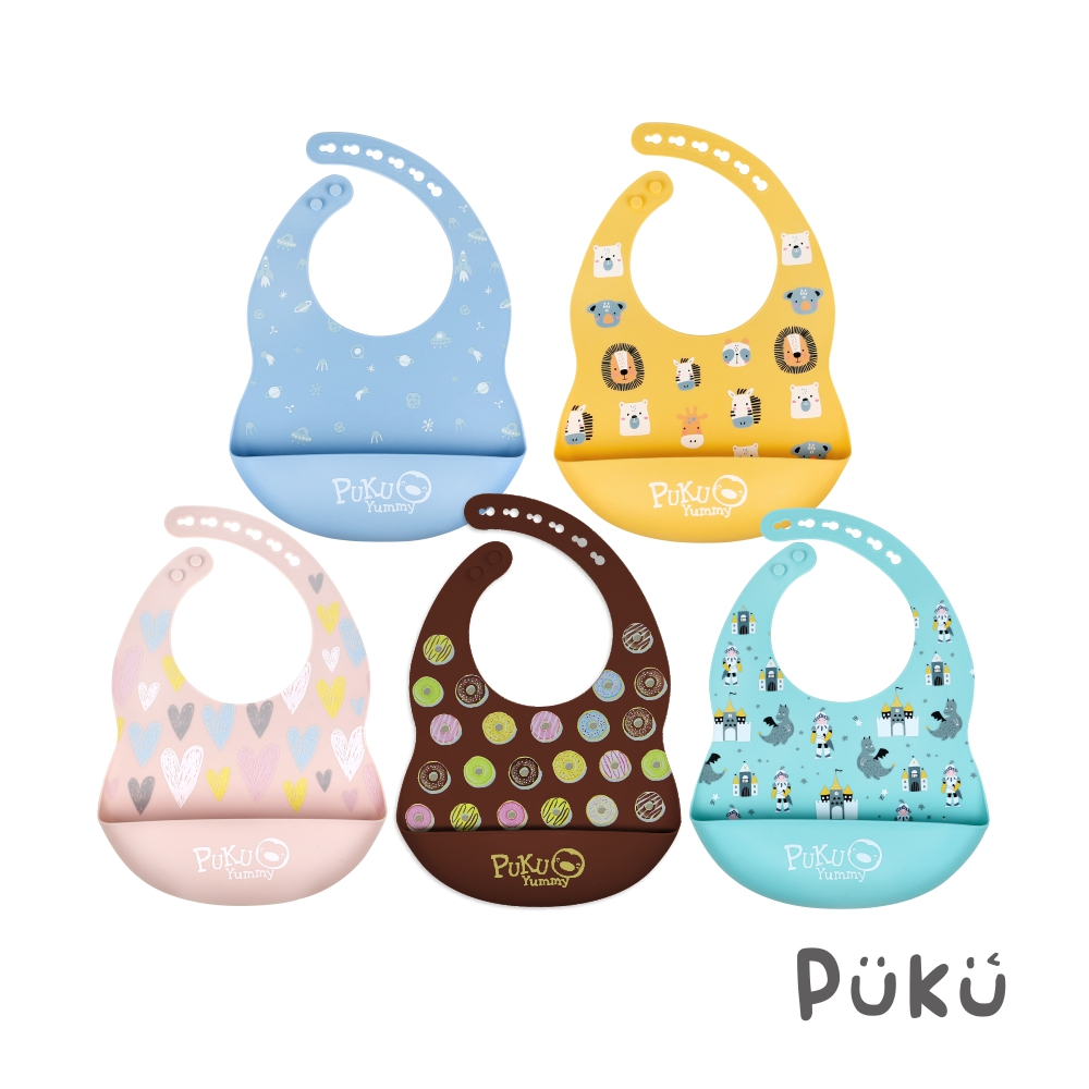 PUKU藍色企鵝 Yummy矽膠圍兜(共五款)草莓星冰樂|非洲大草原|城堡保衛戰|派對甜甜圈|宇宙探險隊BibsPUKU 藍色企鵝官方旗艦店
