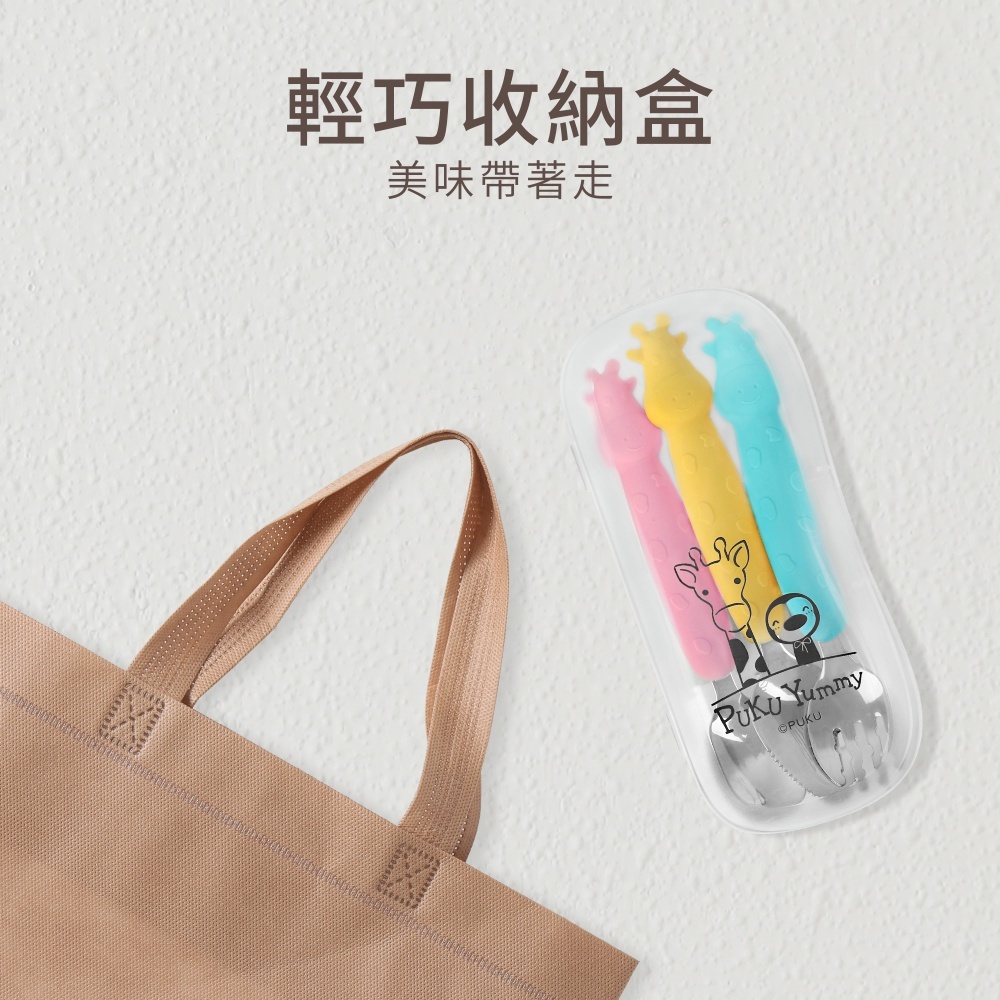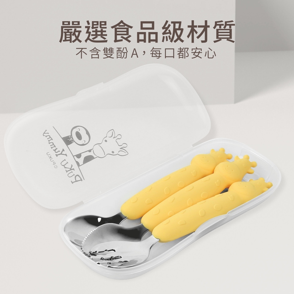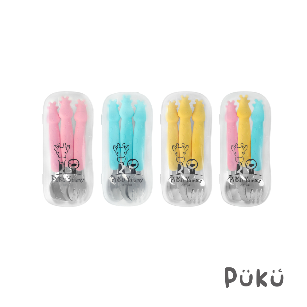PUKU藍色企鵝【盒損福利品】長頸鹿不鏽鋼叉勺3入組(附盒)-四色水色 (附盒)|粉色 (附盒)|黃色 (附盒)|混色 (附盒)UtensilsPUKU 藍色企鵝官方旗艦店