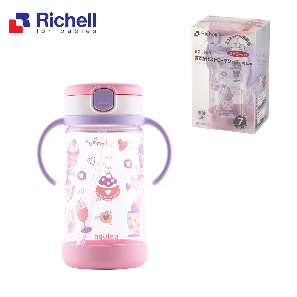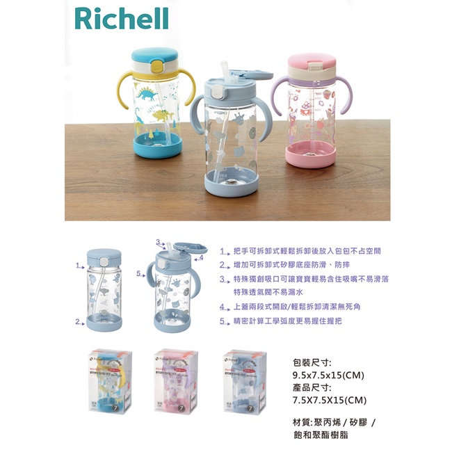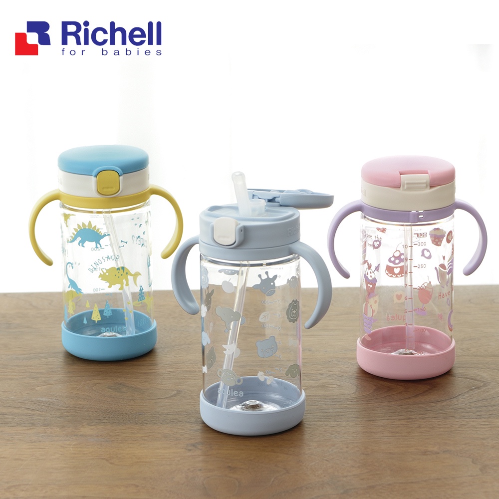 Richell 利其爾| AQ 吸管水杯320ml (含底座)-三款可選(可愛動物/粉紅甜點/恐龍世界)粉紅甜點|恐龍世界|可愛動物(萌寵攻略)UtensilsRichell台灣官方旗艦館