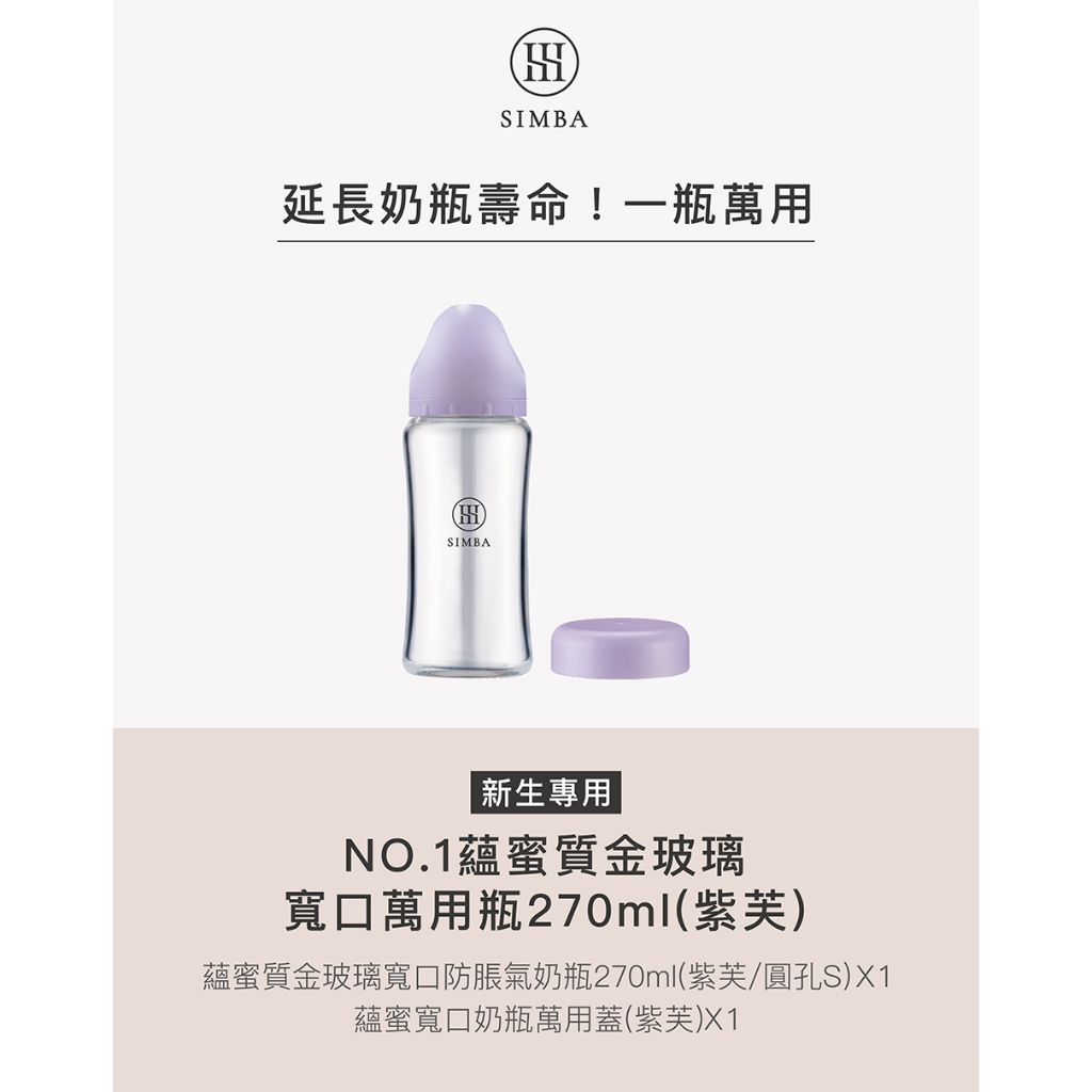 小獅王辛巴 NO.2蘊蜜質金玻璃寬口萬用瓶270ml(紫芙)-新生適用紫芙Bottle-feedingSimba小獅王辛巴 官方旗艦店