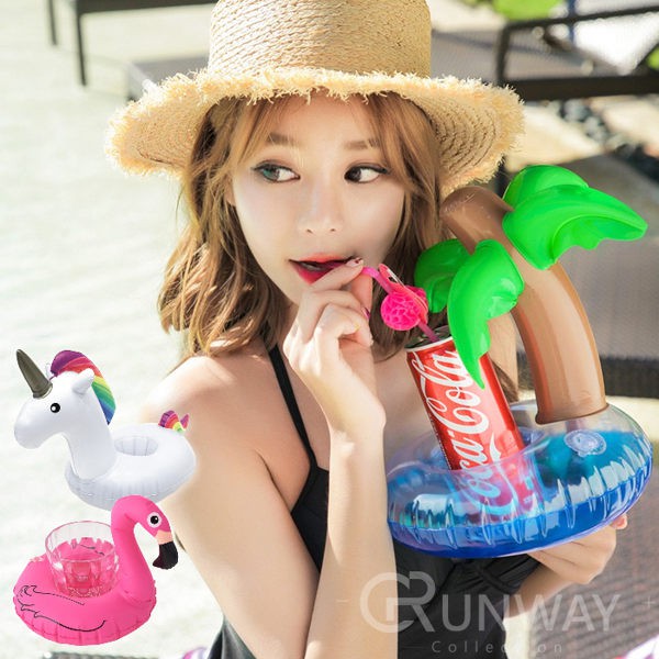 充氣水上杯座 造型杯托 兒童戲水玩具 洗澡玩具 獨角獸/彩虹雲朵/紅鶴/天鵝/椰子樹杯座 充氣玩具 手機座 充氣杯座黑天鵝|椰子樹|彩虹雲|粉小傘|綠小傘Sports & Outdoor PlayRunway Collection