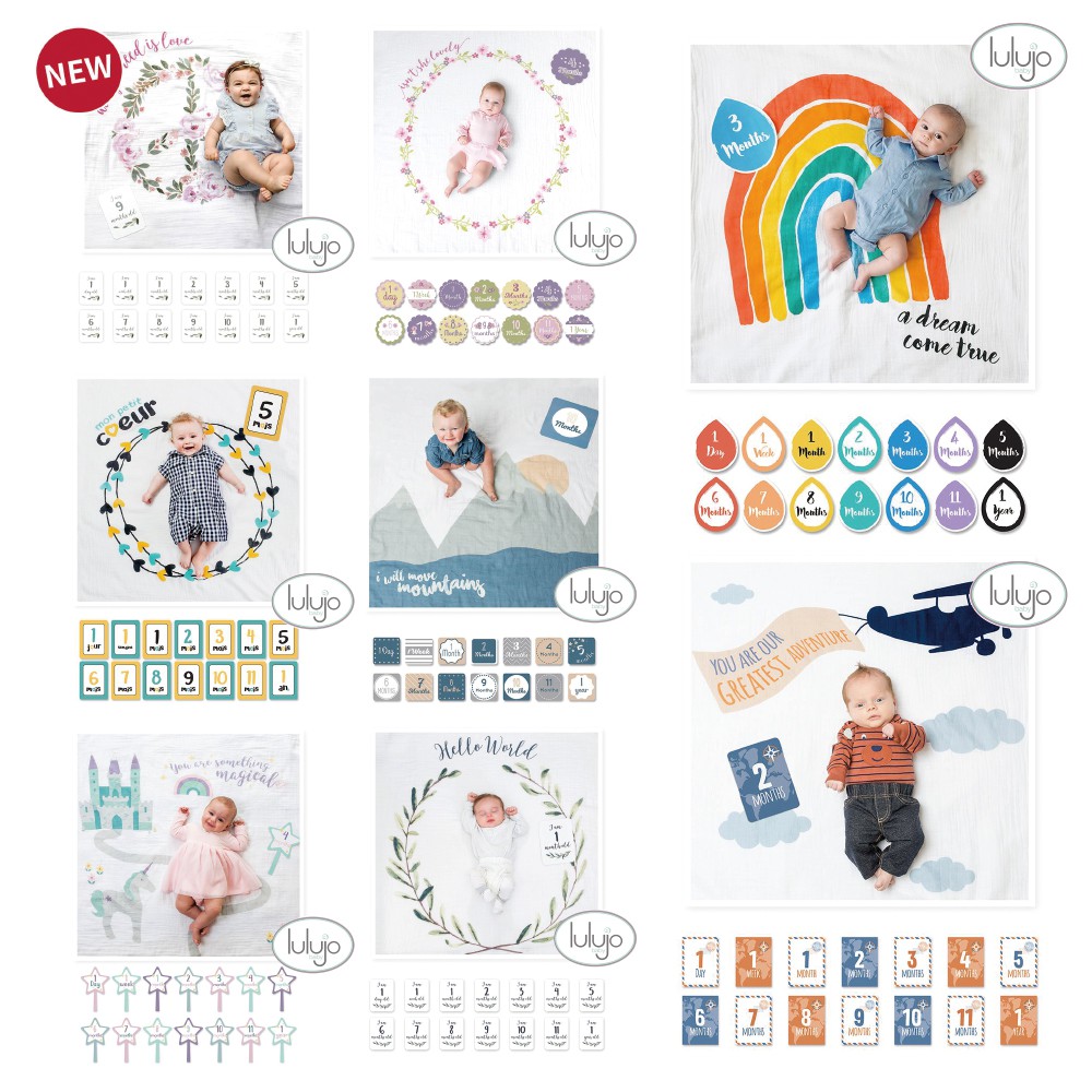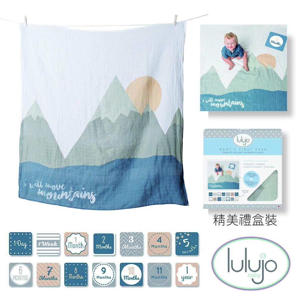加拿大 lulujo BABY’S FIRST YEAR 包巾卡片禮盒組 (多款可選)哈囉|小花圈|飛機|花海|城堡|彩虹|小山群|太陽|成長尺|星星|日出|桃子Mattresses & BeddingnanaBABY寶寶生活精品