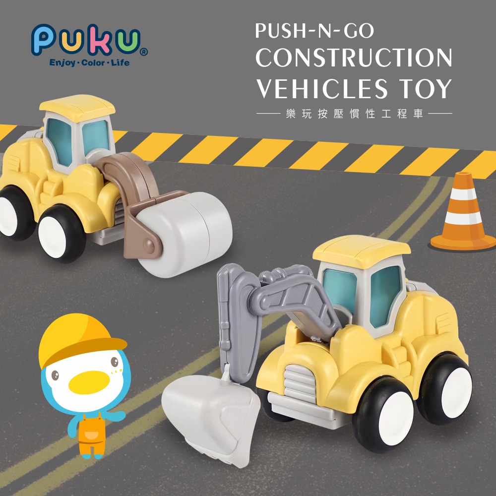 PUKU藍色企鵝 樂玩按壓慣性工程車(四款)推土機|鑽地機|壓路機|挖土機Toy VehiclesPUKU 藍色企鵝官方旗艦店