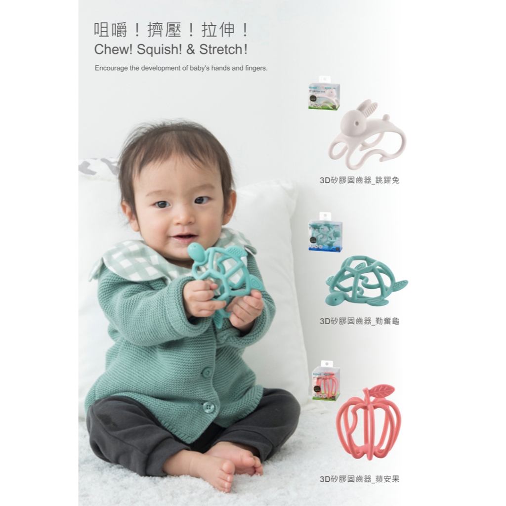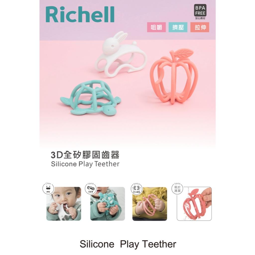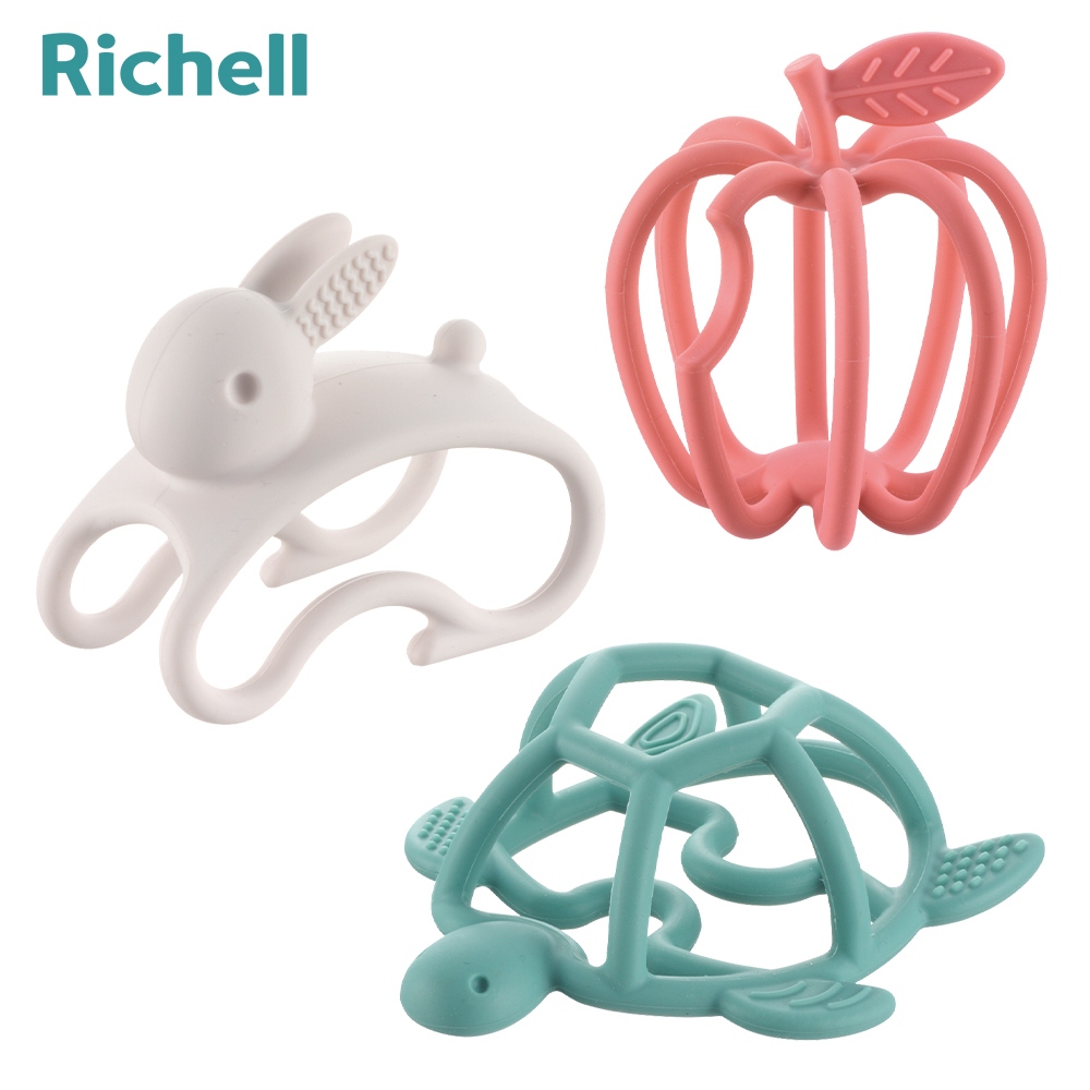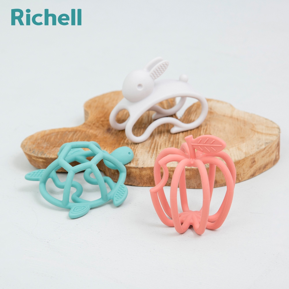 Richell 利其爾|3D互動矽膠固齒器 勤奮龜 (3 個月以上適用) 安撫玩具跳躍兔固齒器|勤奮龜固齒器|蘋安果固齒器Baby & Toddler ToysRichell台灣官方旗艦館