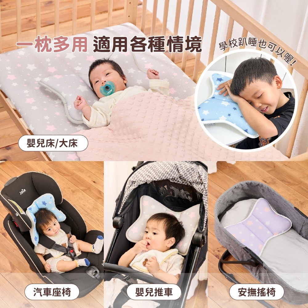 培婗PeNi【透氣護頸】推車枕頭 嬰兒枕頭 寶寶枕頭 定型枕 涼感枕頭 蝴蝶枕 護頸枕 頭型枕 透氣枕 汽座枕頭 可水洗灰粉星星|藍白星星|紫色星星Mattresses & BeddingPeNi培婗